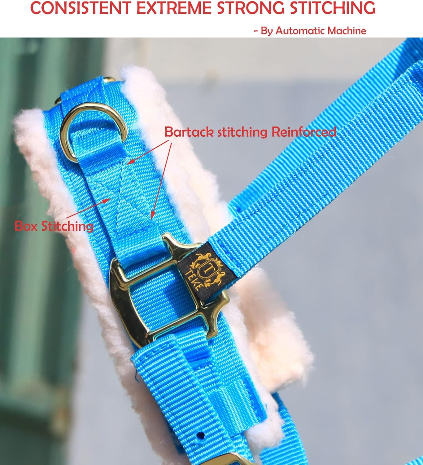 - Bartack stitchings on nose band for strong and durable construction