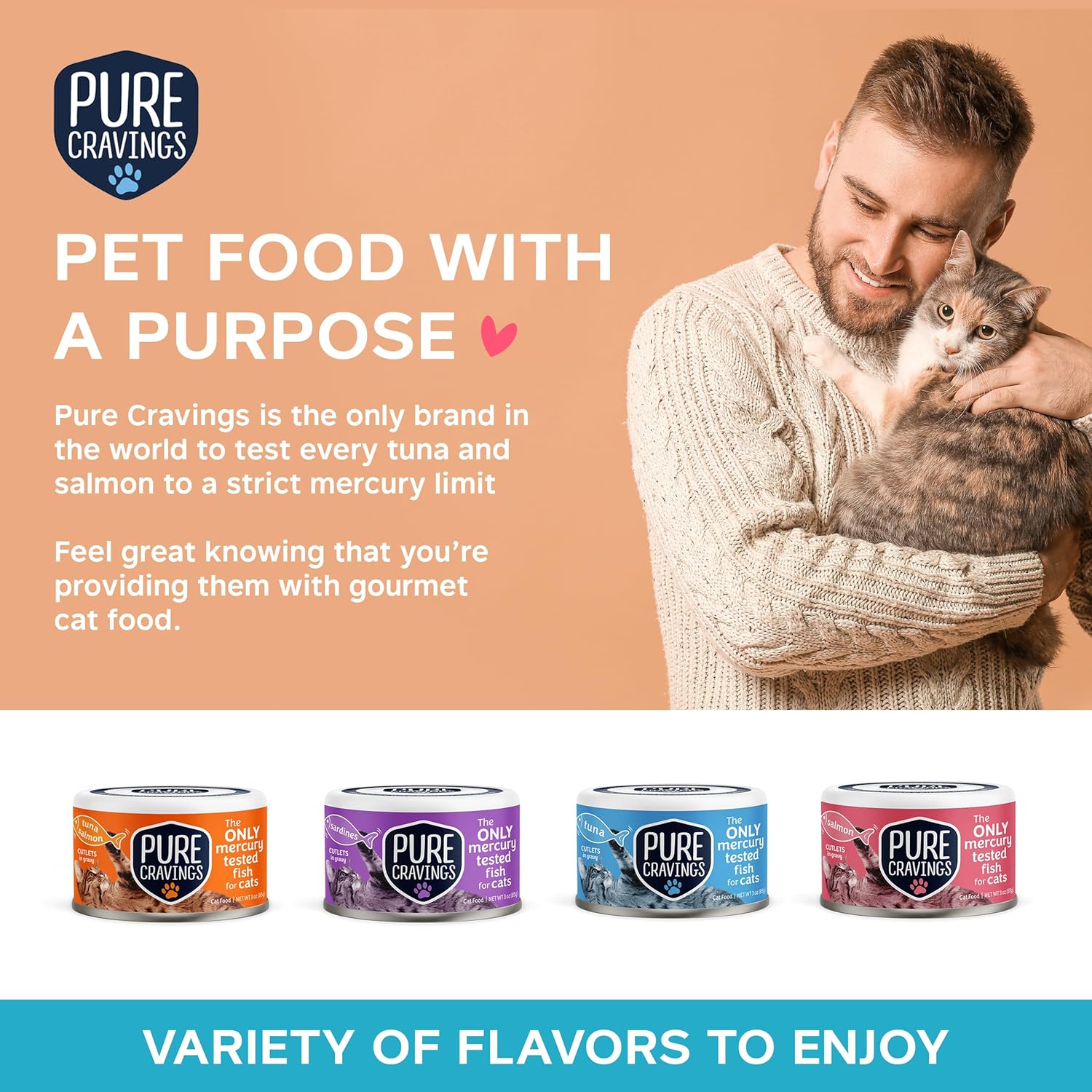- PREMIUM CAT FOOD – Pure Cravings is a world leader in super premium cat food – the only brand in the world to test every catch of fish to a strict mercury limit. Feel great knowing that you’re providing them with natural cat food.