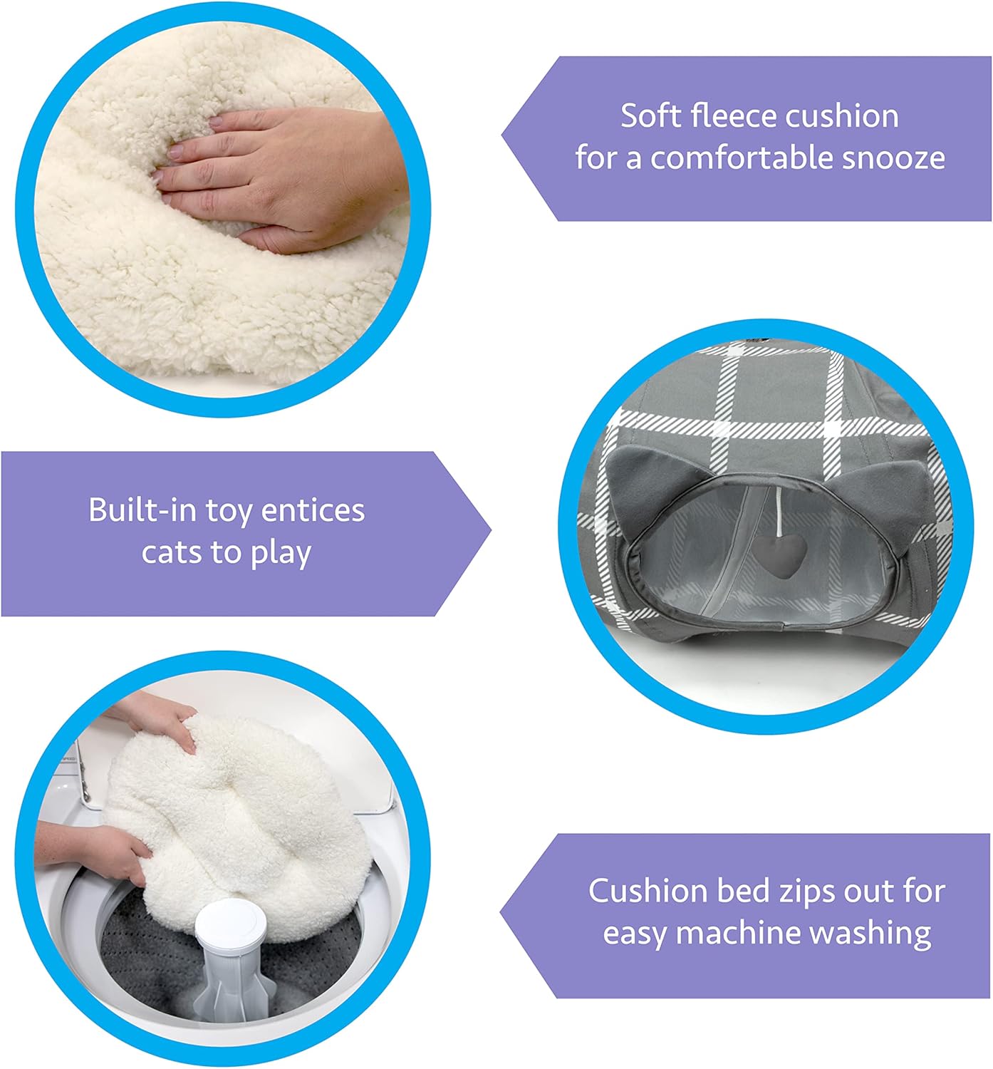 - NAP AND PLAY: The Kitty City Plaid Cat Tunnel Bed combines everything your feline friend could love in one convenient set. It’s a tunnel, a bed, and a spot to swat and play all in one! And better still, it’s easy to assemble.
