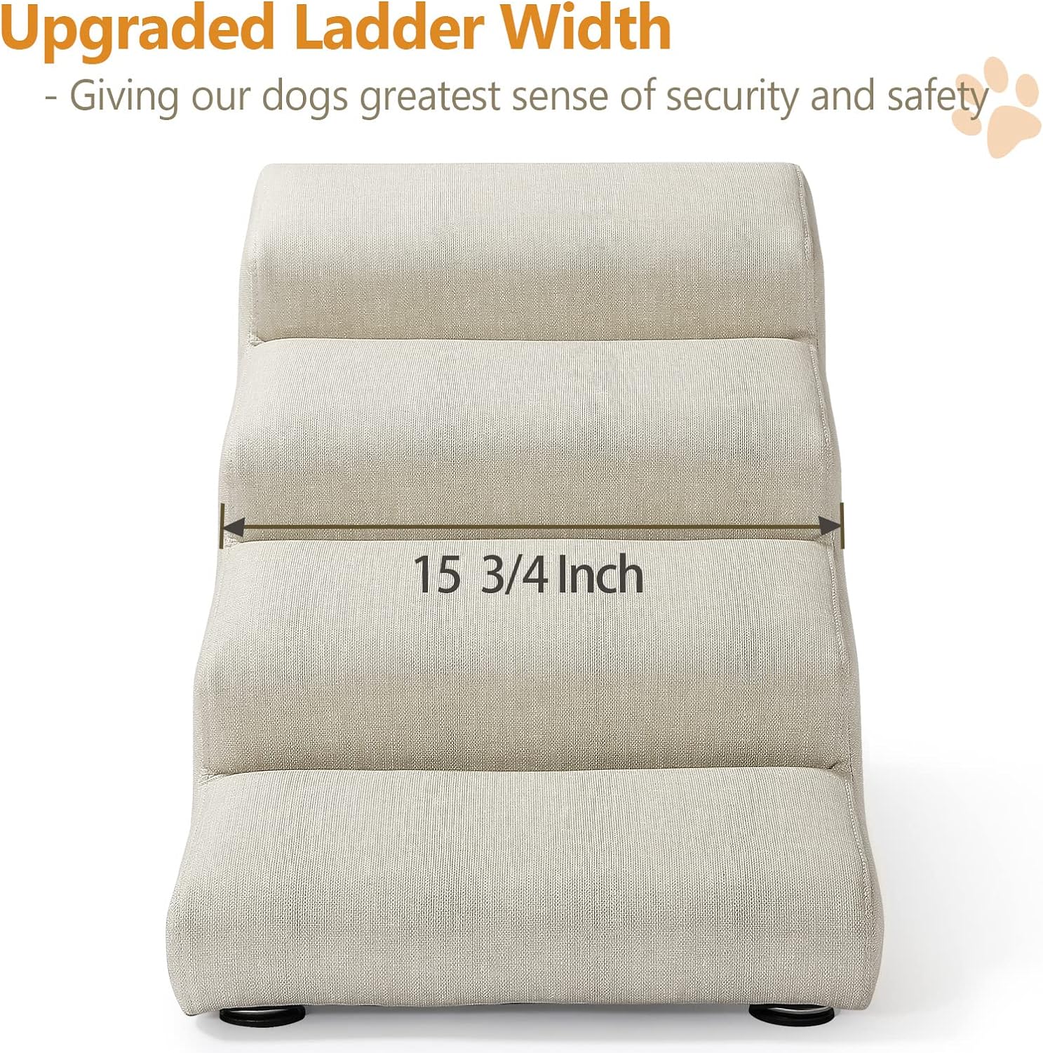 Senneny Imitation Linen Faux Leather Dog Stairs, for Pets up to 150 lbs, Waterproof, Scratch Resistant Pet Steps/Stairs with High Density Foam and Detachable Wooden Legs, Light Beige Linen, 4 Step