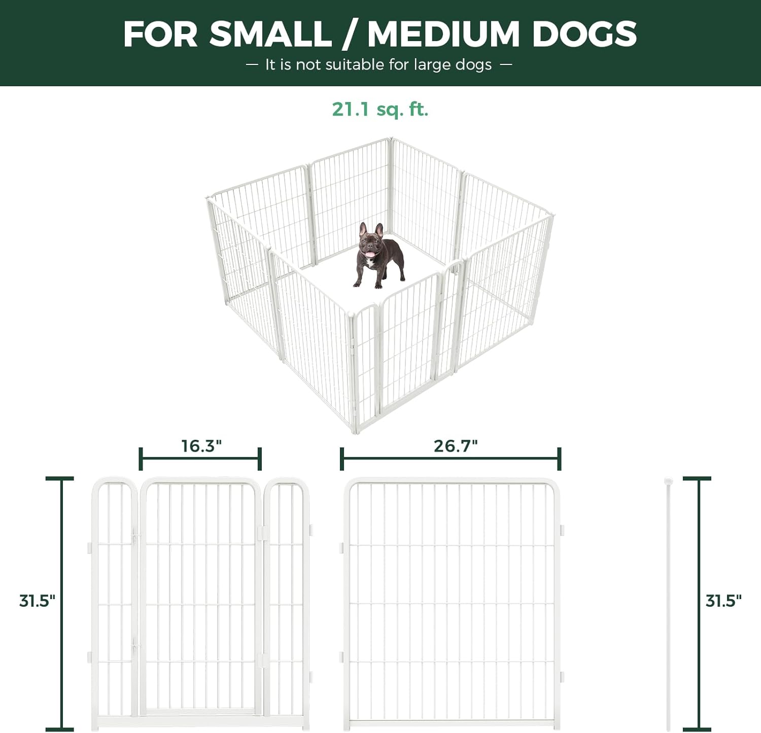 FXW Homeplus Unleashed Indoor Dog Playpen - Stress-Free and Safe Play, Heavy Duty 32 Inch 8 Wire Panels Dog Pen for Small and Medium Dogs, White│Patented