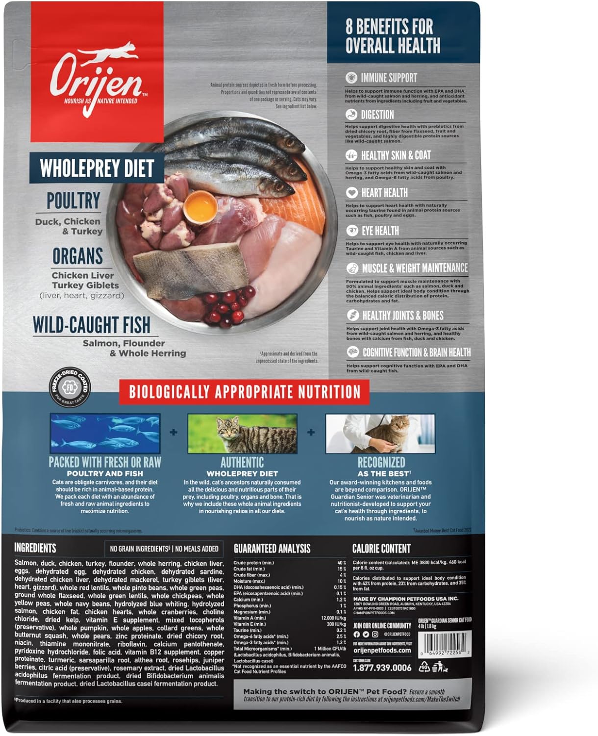 ORIJEN Guardian Senior Grain Free High Protein Premium Dry Cat Food 4lb Bag