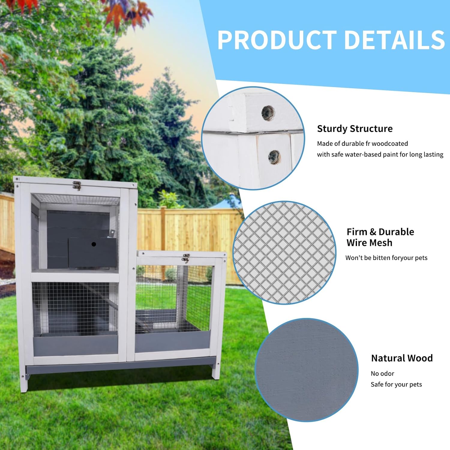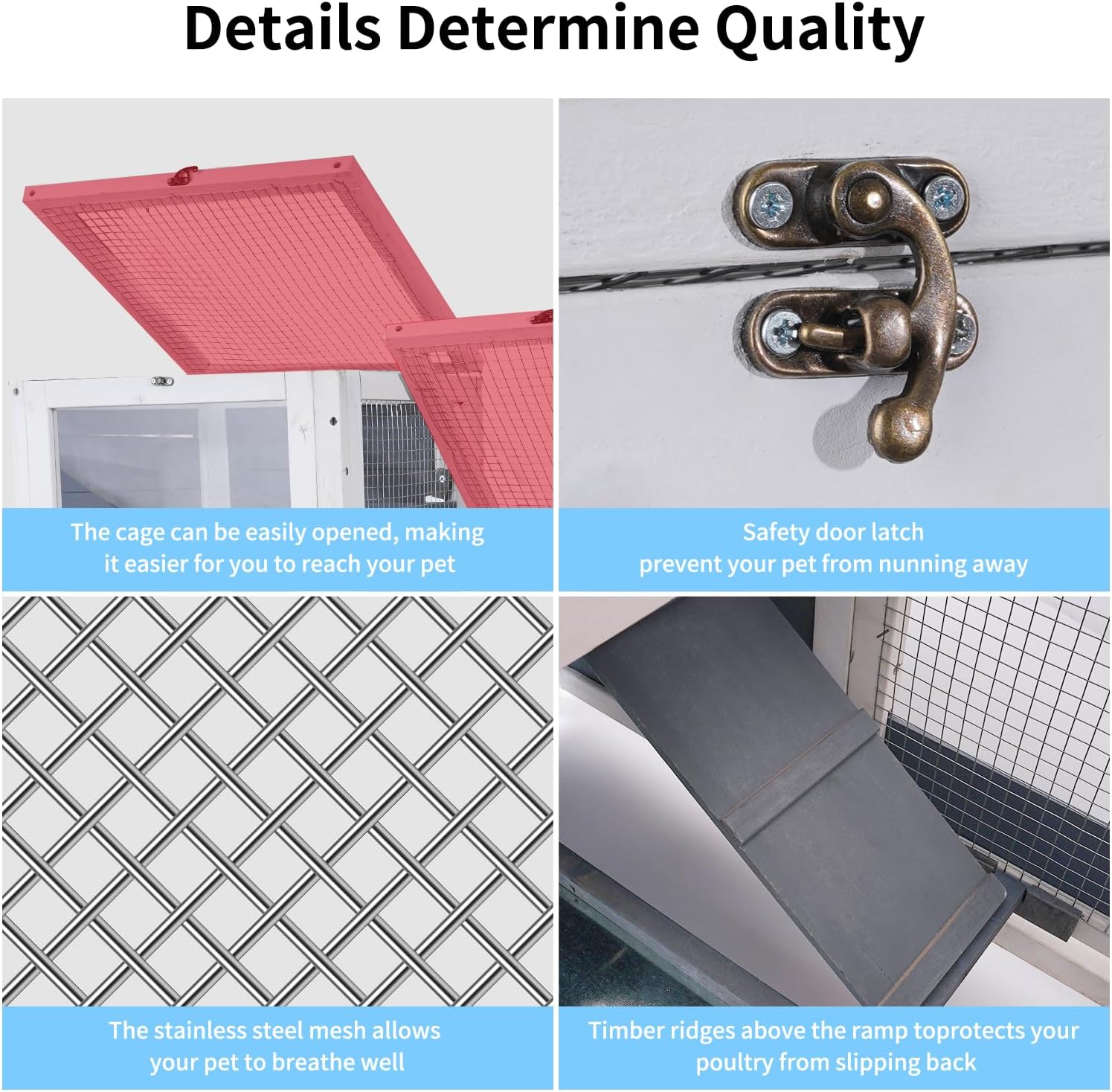- 【Thoughtful Design】This pet house not only has two flip-top doors for your furry guys to get in and out, but also boast an easy-to-climb ramp connecting the two floors. Deeper galvanized pull-out tray with no leakage at the bottom is handy for cleaning up.
