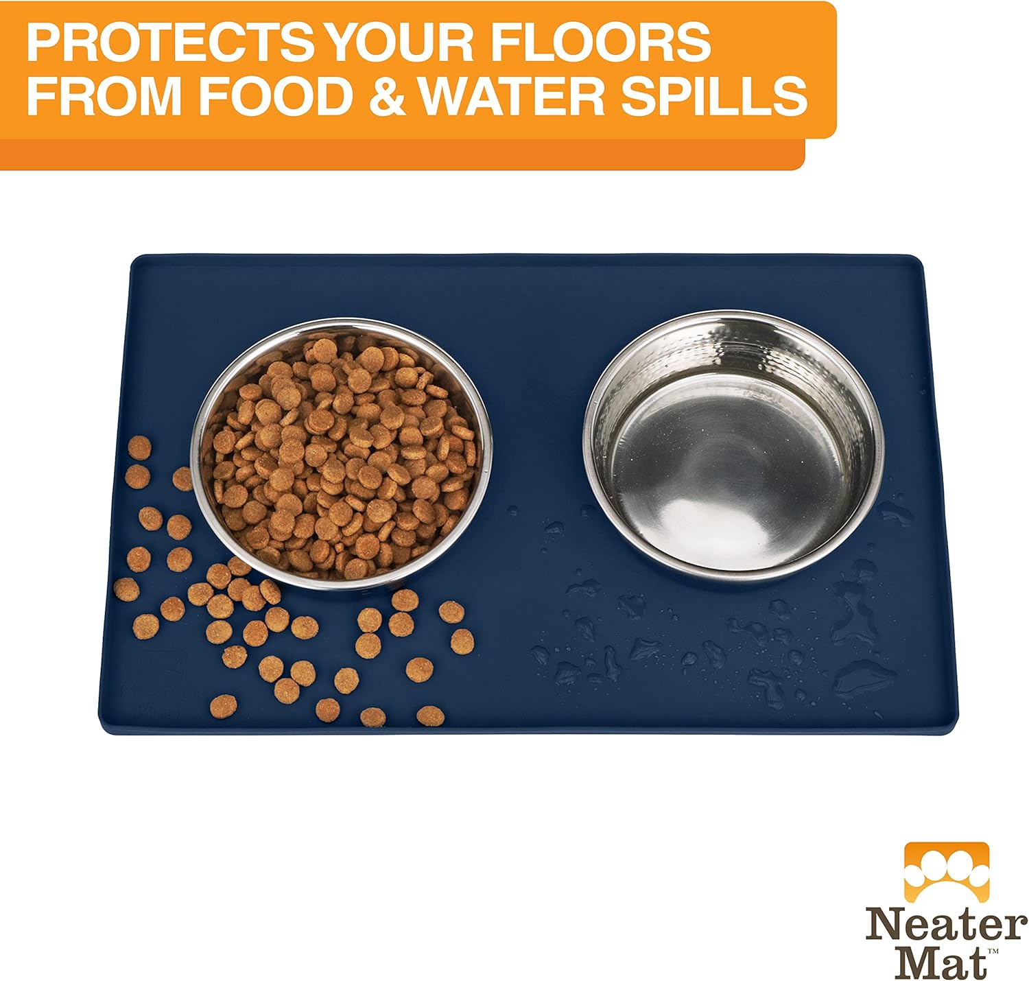 Neater Pet Brands Neater Mat Pet Mats for Food and Water, Cat & Dog Bowl Mat Waterproof Silicone, Feeding Tray, Dog Food Mats for Floors, Placemat w/Raised Edge for Under Bowls, 19” x 12”, Dark Blue