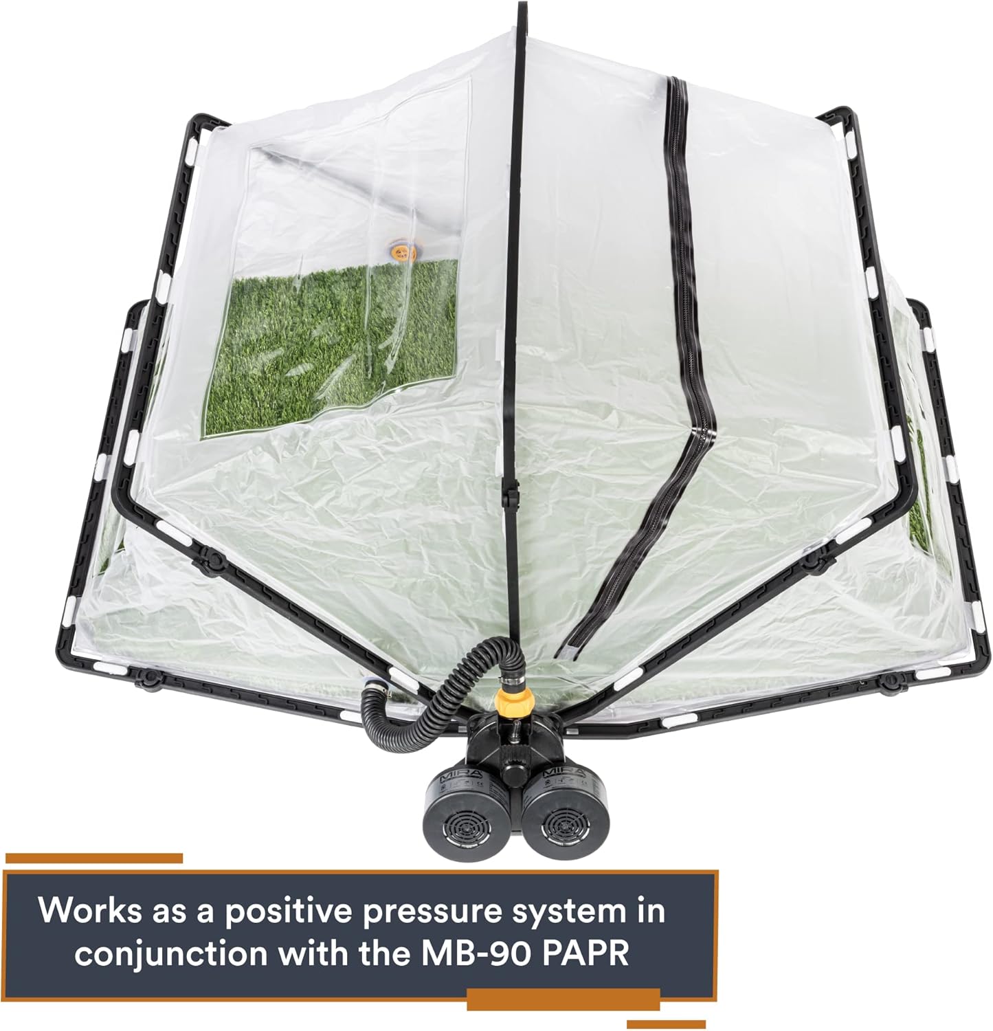 - SUPERIOR PROTECTION - The Ark uses a powered air-purifying respirator (PAPR) to create a compact, protective enclosure for your cherished pets. It is effectively a âdog gas mask,â providing a constant stream of filtered air into the spacious interior. Works as a positive pressure system in conjunction with the MB-90 PAPR (sold separately and required for operation)