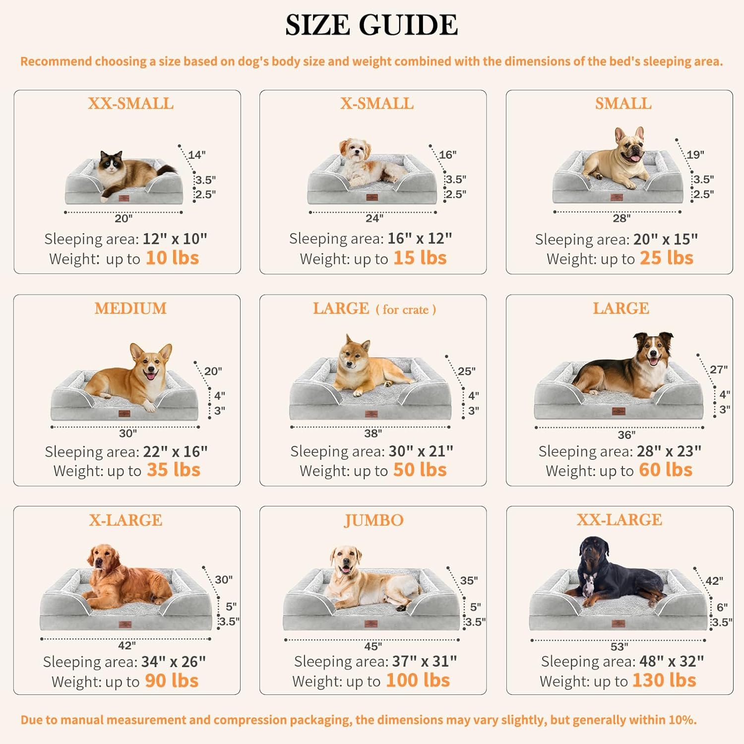 Comfort Expression XL Dog Beds Waterproof, Orthopedic Foam Dog Beds Large Sized, Bolster Dogs Beds Washable Pet Sofa with Removable Cover & Non-Slip Bottom(X-Large,Grey White)