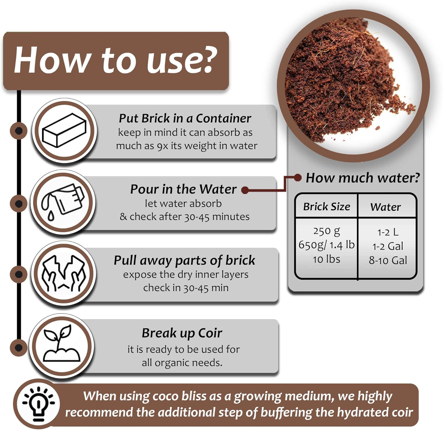 - Coco Bliss Coco Coir (10lb Block) - Coco coir is a 100% organic and renewable soil amendment that works as a growing medium for succulents, herb planters, seedlings, vegetables, flowers, indoor house plants, indoor gardens, and more. Unlike peat moss, coco coir is 100% natural and doesnât contribute to the destruction of natural wetlands.