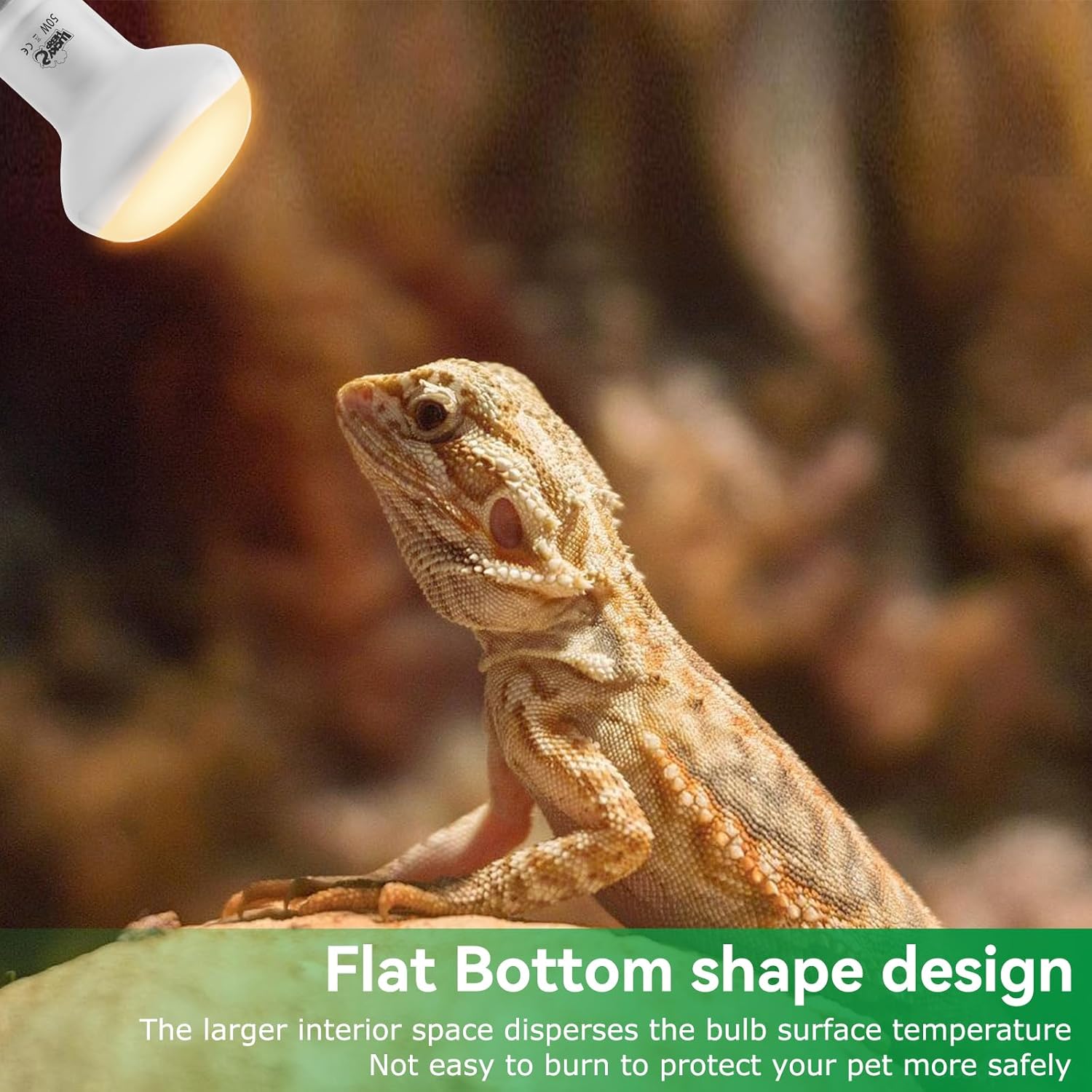 - Special Feature : Flat bottom design, 30° intense spotlight bulb, reptile light bulb, heat light bulb for reptiles