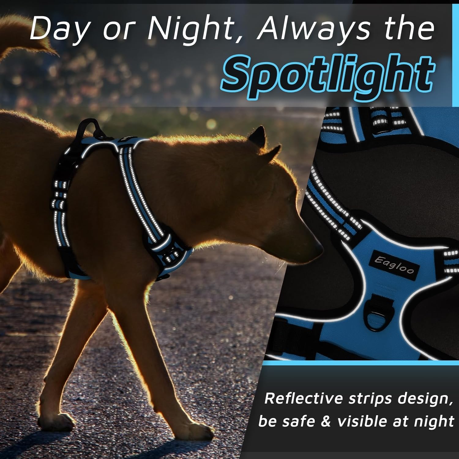 Eagloo Dog Harness Medium Sized Dog, No Pull Service Vest with Reflective Strips and Control Handle, Adjustable and Comfortable for Easy Walking, No Choke Pet Harness with 2 Metal Rings, Sky Blue, M