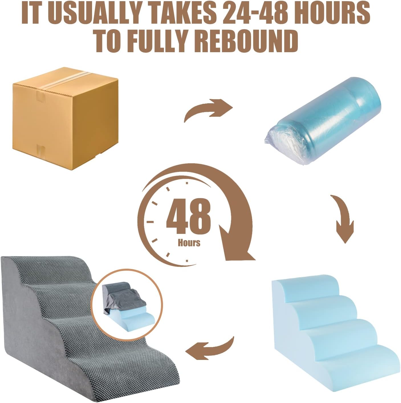 - High-quality spongeďźOur pet stairs for small dogs use high-density foam for superior comfort and resilience, with durable materials for long-lasting support. Give your furry friend a safe and convenient way to reach elevated spaces in your home with our top-quality dog stairs for small dogs.