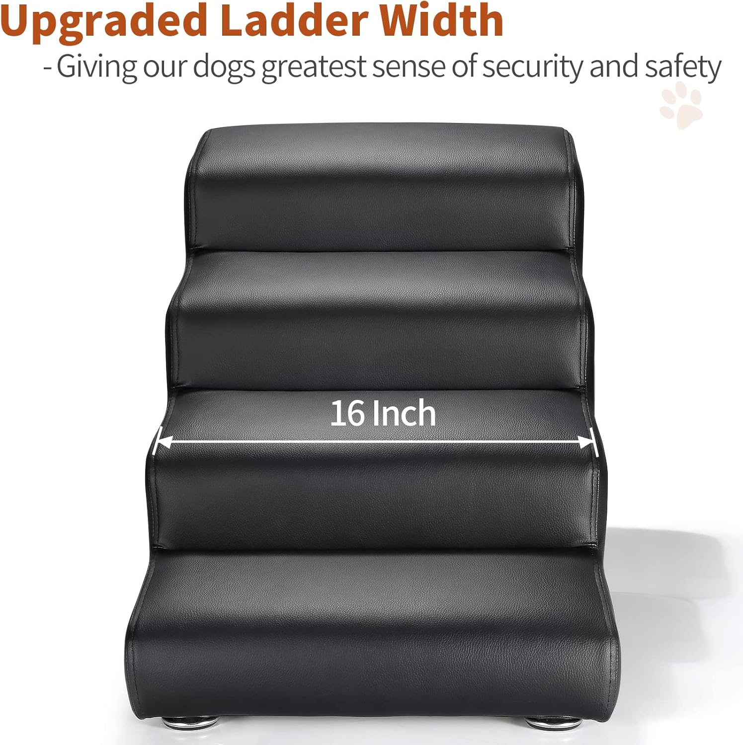 Senneny Black Faux Leather Dog Stairs, for Pets up to 150 lbs, Waterproof, Scratch Resistant Pet Steps/Stairs with High Density Foam and Detachable Wooden Legs, Black, 4 Step