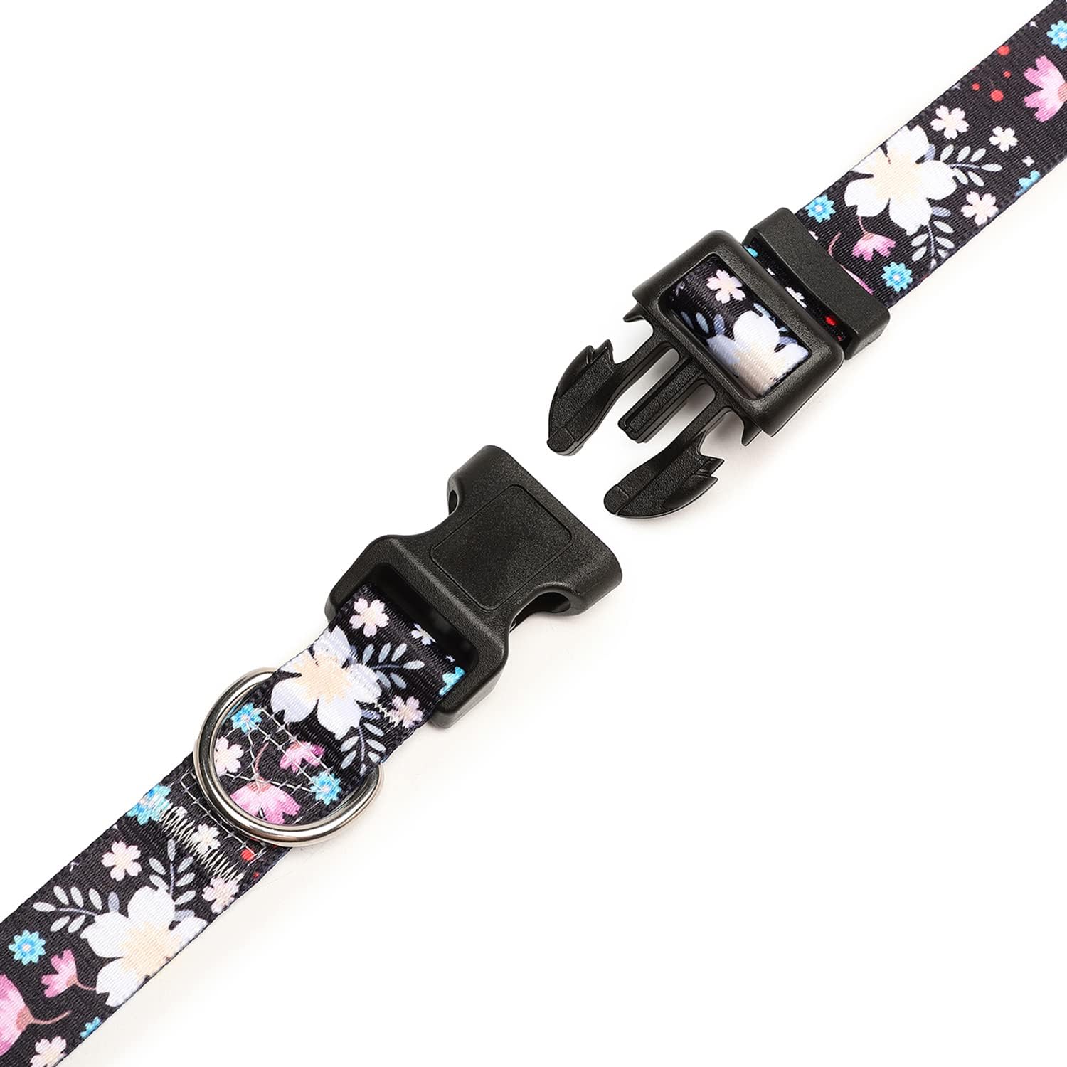 Mercano Adjustable Dog Collar - Special Design Patterns, Soft Nylon Comfortable Durable Pet Collar for Small Medium Large Dogs (L, Floral White)
