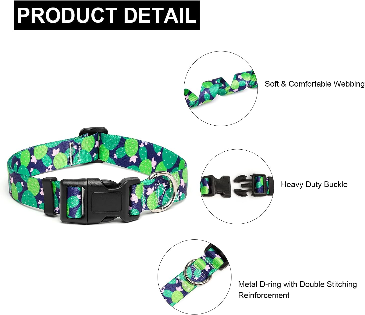Mercano Adjustable Dog Collar - Special Design Patterns, Soft Nylon Comfortable Durable Pet Collar for Small Medium Large Dogs (M, Cactus)