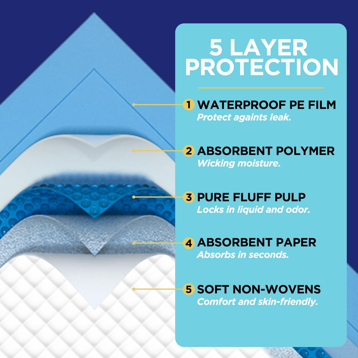 - ✔✔Sealed On Four Sizes And The Bottom---Moisture-proof barrier helps keep beds, chairs and other surfaces dry. Backing is made of high quality polypropylene to prevent leakage. The non-permeable layers at the bottom and four sized prevent leakage efficiently while the soft fluff fill absorbs a higher volume efficiently. Sheets and mattress pads protector from moisture and staining.