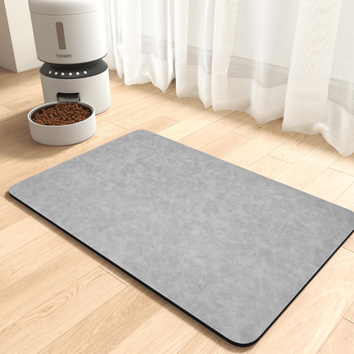 MontVoo-Absorbent Pet Feeding Mat-No Stains Pet Mat for Food and Water Bowl-Quick Dry Cat & Dog Food Mat Water Dispenser Mat-Pet Supplies Mat-Dog Water Bowl Mat for Messy Drinker Light Grey