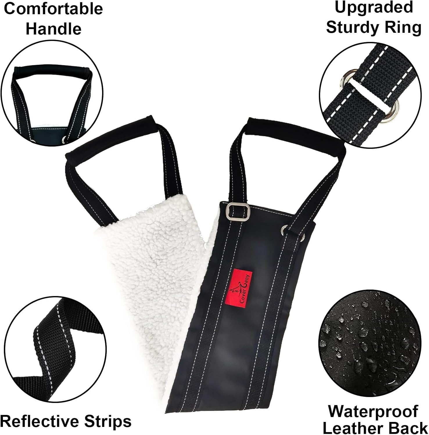 - Easy to use and store: place the harness under the dog's belly with the fleece lining touching their belly, and adjust the webbing as needed. It can be easily folded for portability when not in use.