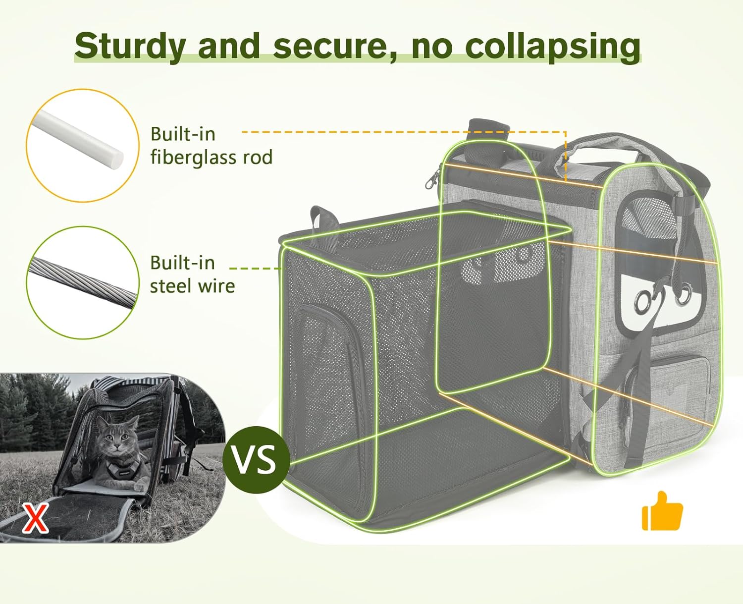 Pecute Pet Carrier Backpack, Large Cat Carrier Backpack Hold Up to 22 Lbs, Expandable cat Backpack with Breathable Mesh for Medium Dogs Cats, or 2 Small Pets, Dog Backpack Carrier for Travel Hiking