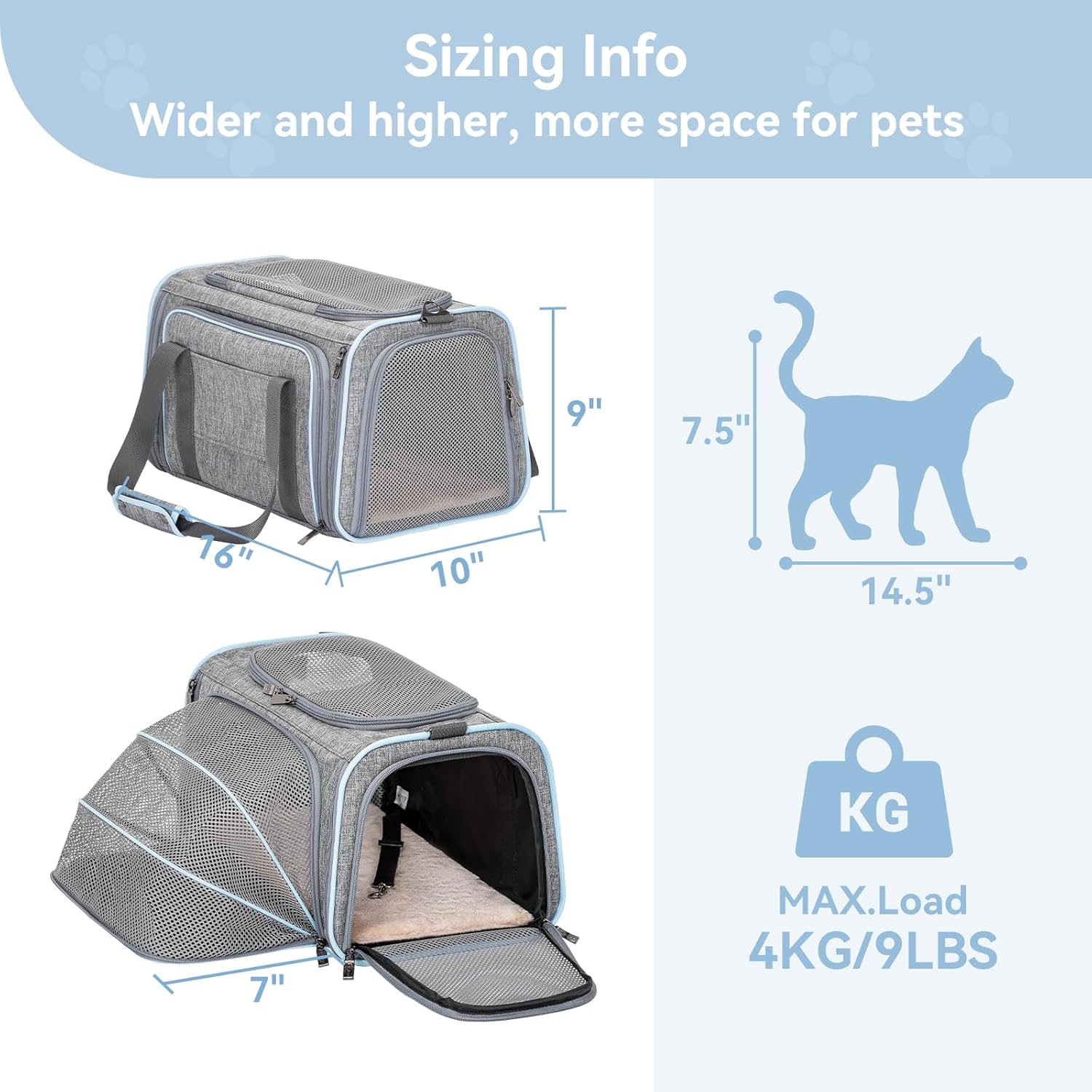 Petsfit Small Cat Carrier Soft Airline Approved Expandable Carrier for Kitten Puppy Bunny, 16"X10"X9“