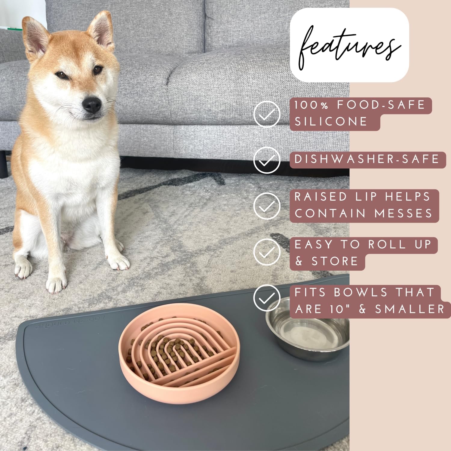 - NON-SLIP: Our mat's non-slip texture reduces the chance of tipping and sliding and ensures pet bowls stay in place. The Half Moon Mat helps make mealtimes cleaner and tidier, especially for active pets.