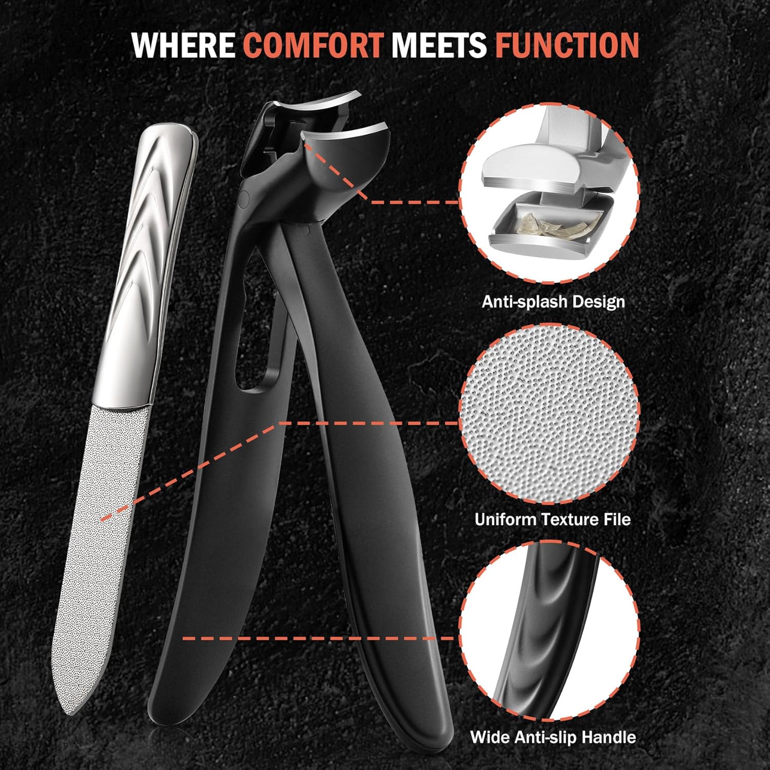 - đĽWHERE COMFORT MEETS FUNCTION - No more fumbling around with awkward fingernail clippers that slip out of your hand. With our toe seniors nail clipper's comfortable grip, you'll have better control for more efficient nail care. Our nail cutter's ergonomic handle is perfect for all nail types, so you can achieve a professional-looking manicure or pedicure from the comfort of your own home.