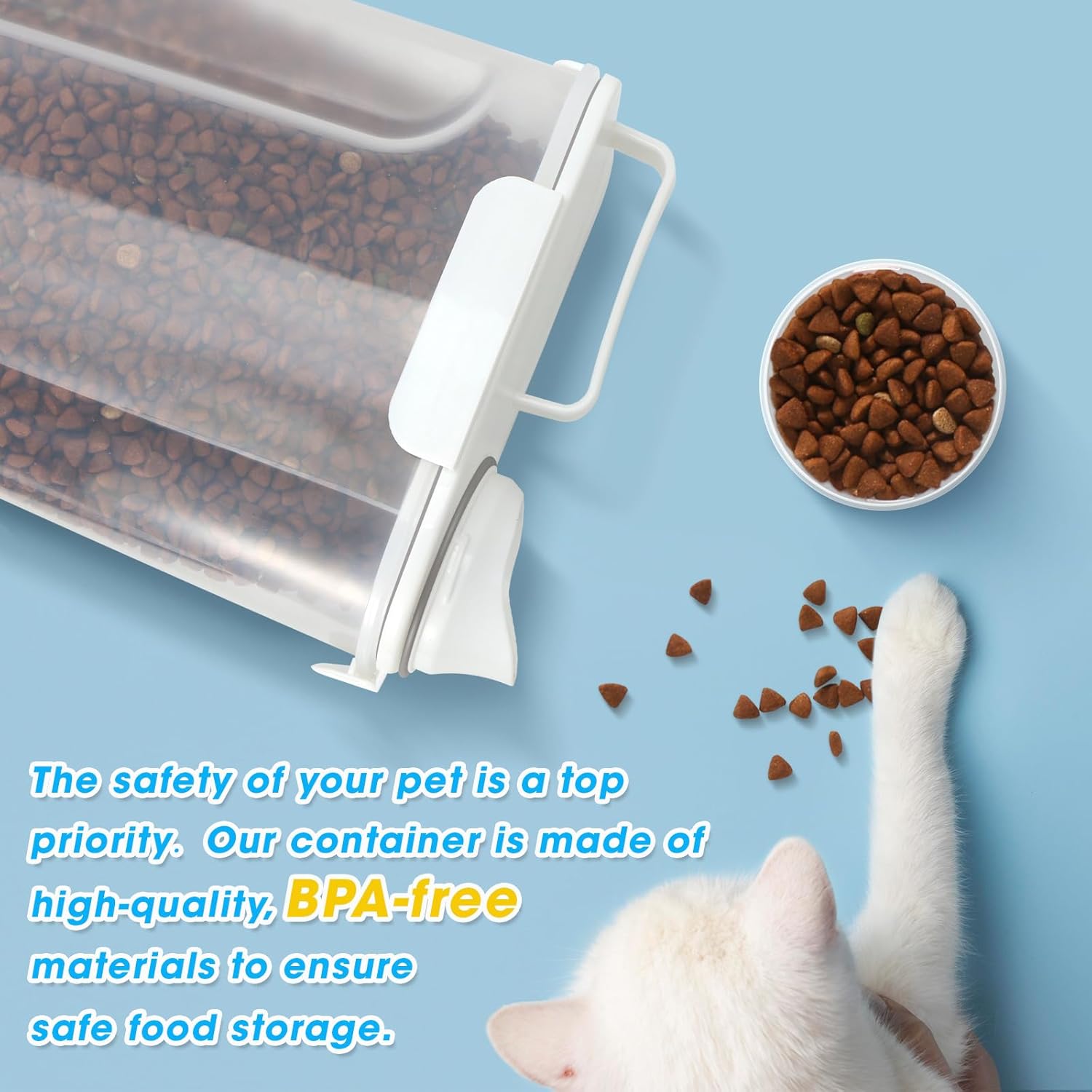 - Portable Pet Food Dispenser: Designed with an ergonomic carry handle and grip groove, this pet food stroage container is easy to hold and pour â even for small hands. Perfect for pet lovers of all ages, whether feeding indoors or outdoors