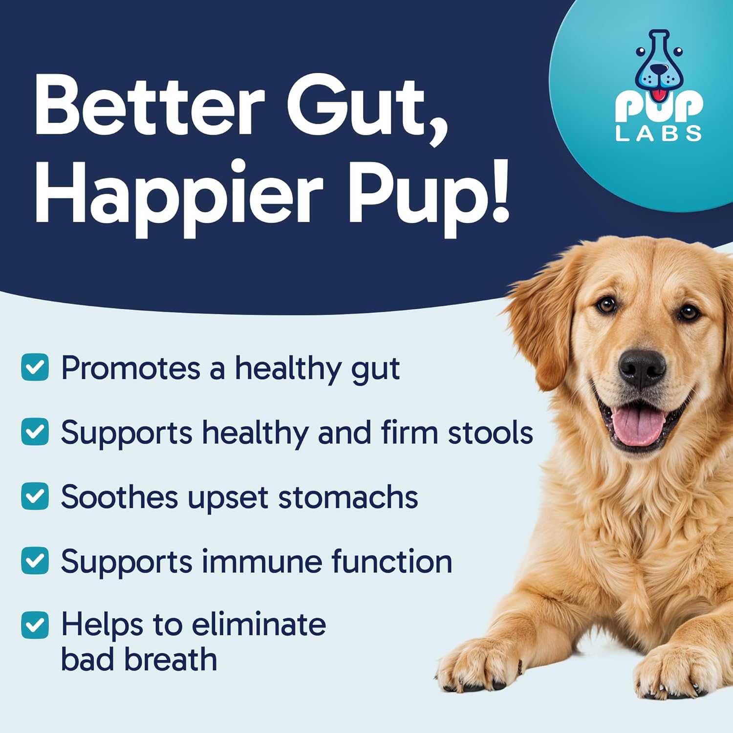 - Supports Digestive And Immune Health: Tummy Essentials premium probiotics for dogs are packed with powerful ingredients to promote a healthy gut, support firm stools, boost immune function, and help eliminate bad breath.