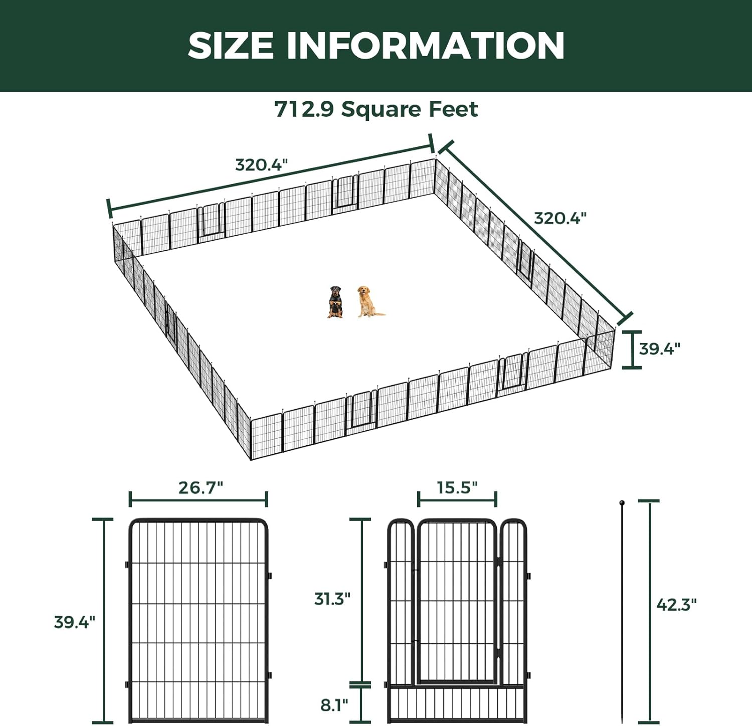 - Super easy to assemble: It won’t take you more than 5 minutes to assemble these portable dog fences as well as pack them away due to the rod-connected design. Meanwhile, panels can be added or removed freely to give you a fully flexible area and arrange the dog pen in any shape you need.