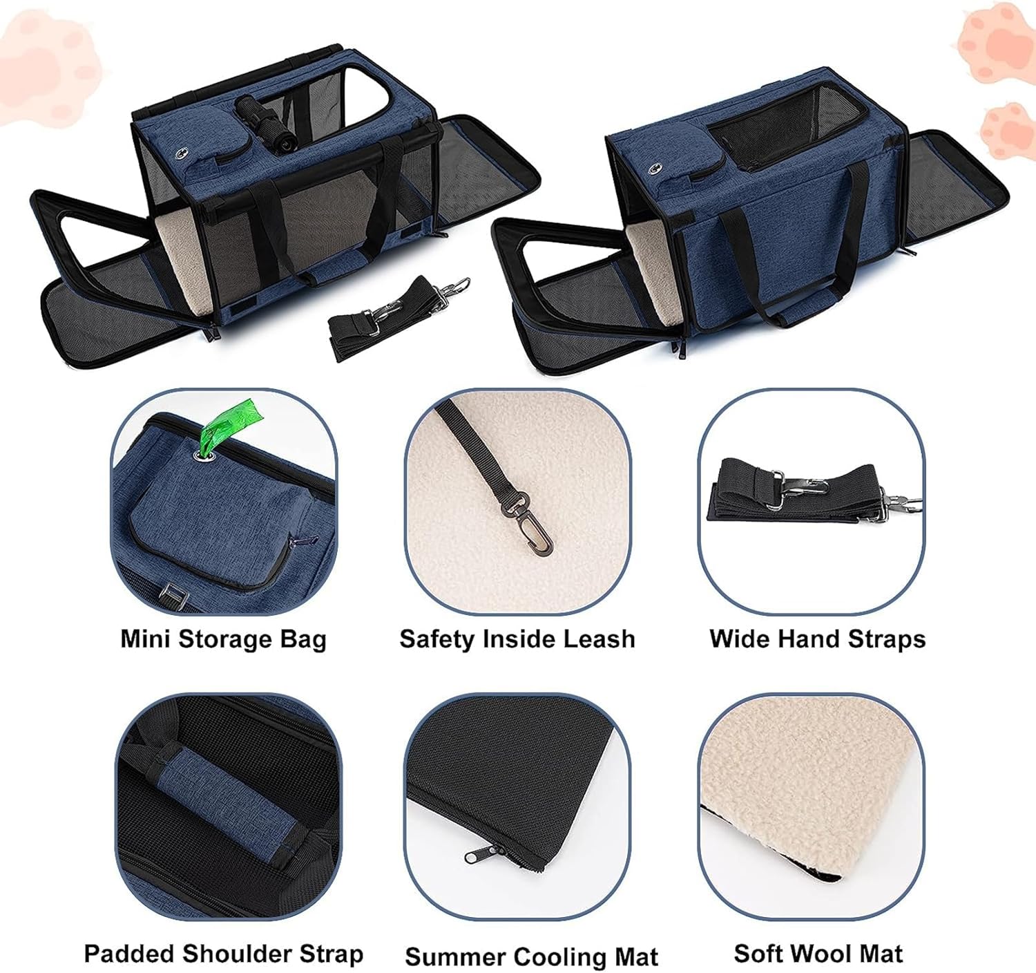 - 【Collapsible & Lightweight】The cat carrier can be folded into a pad to save your storage space and is easy to take out. Top and side entry.