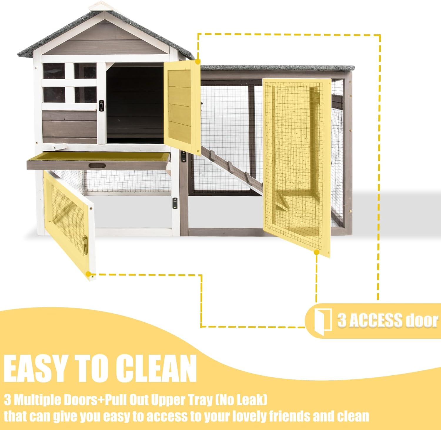 - đăEASY TO CLEAN Pull-out Tray & 3 Entry Doorsă - The Bunny hutch with DEEPER pull out tray make clean easily. Our trays also have a lockable design.We also added a locker for the tray for Enhance the stability and prevent the tray from accidentally falling off.