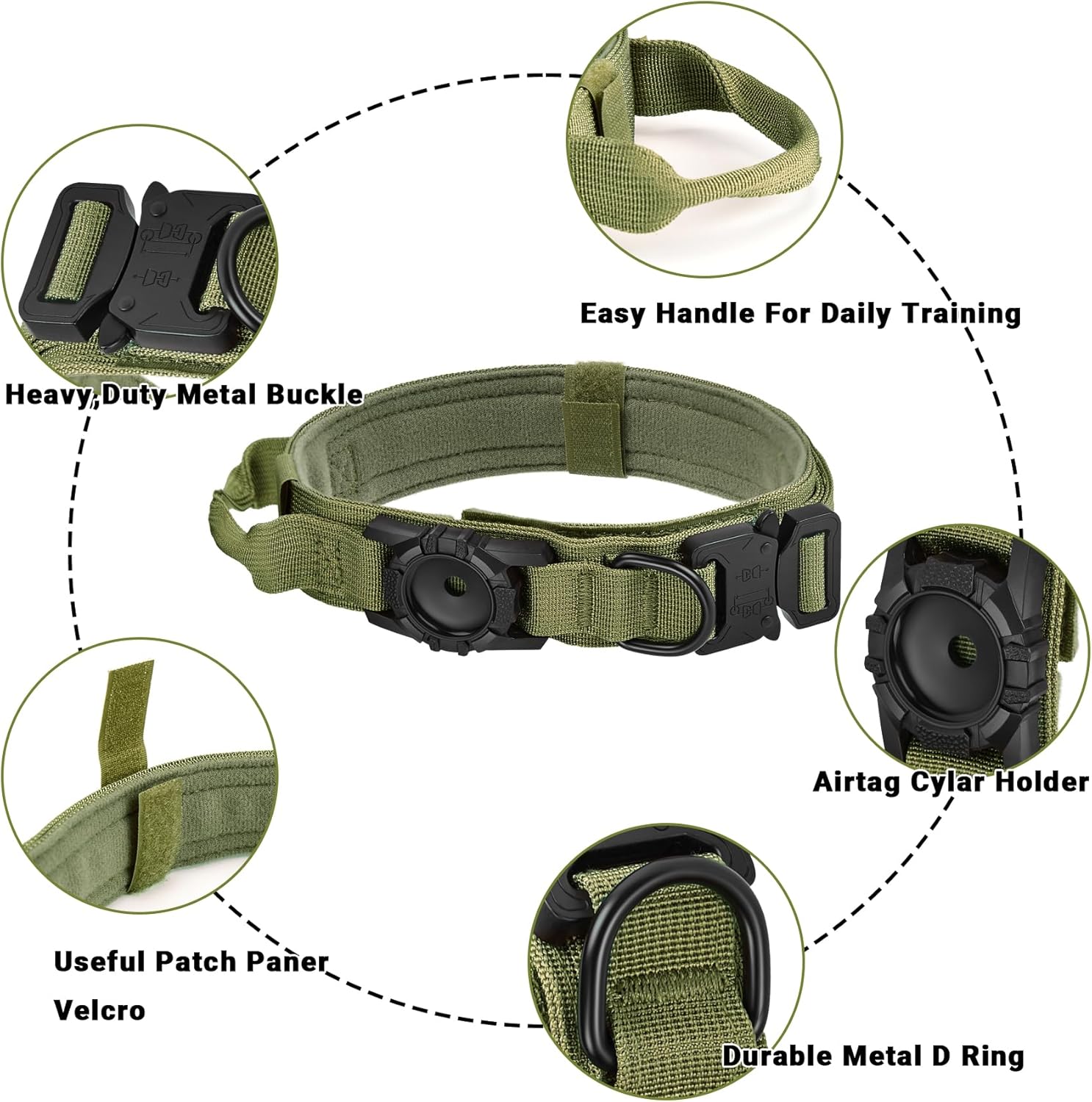 Tactical AirTag Dog Collar - Heavy Duty, Adjustable GPS Collar Compatible with Apple AirTag, with Holder & Control Handle for Medium/Large Dogs [ Green, M ]