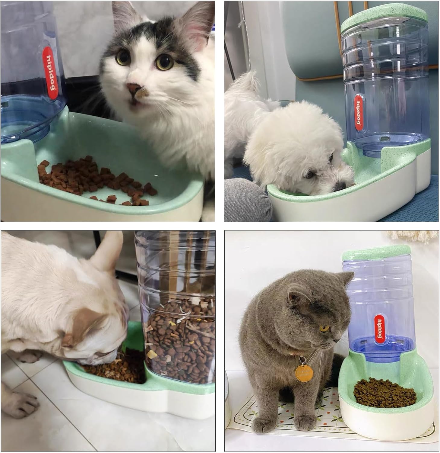 kathson Automatic Cat Feeder 1 Gallon Gravity Dog Food Dispenser Large Capacity Self Feeding Pet Food Bowl Station for Puppy Kitten Rabbit Green