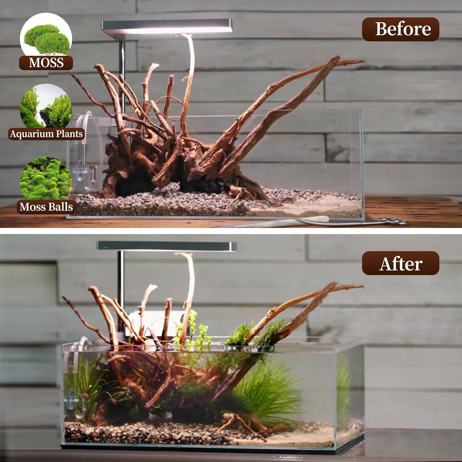 - 【Suitable For Aquariums Of Various Styles】 --- It is suitable for aquariums decorated in simple styles. You can also use it to create moss trees in a fish tank. It can be used not only as aquarium decorations, but also as reptile decor.