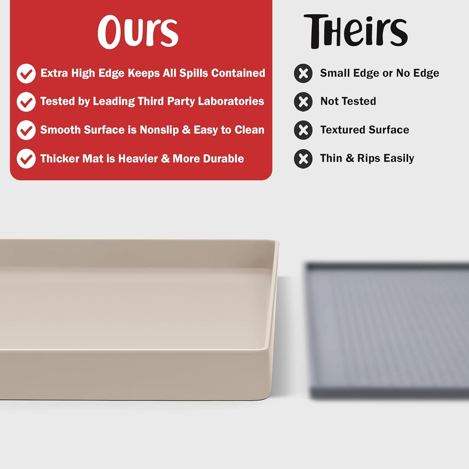 DogBuddy Dog Food Mat – Waterproof Dog Bowl Mat for Food and Water, Silicone Pet Feeding Mats for Floors, Non-Slip Placemat with High Edges for Dogs Bowls, Puppy Essentials (XXL: 32"x24", Vanilla)