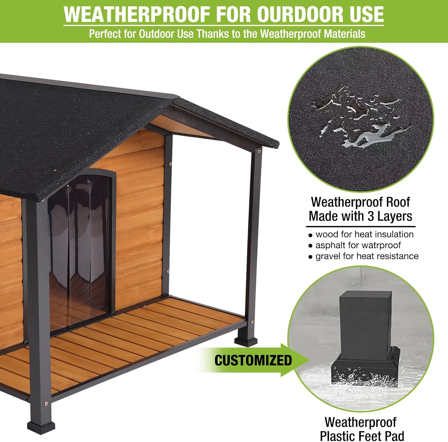 - 【Strong & Durable】Our dog house upgrade with UNIQUE iron frame,prevent destroy from dogs.the durable wooden panel can load-bearing a 180-pounds adult.