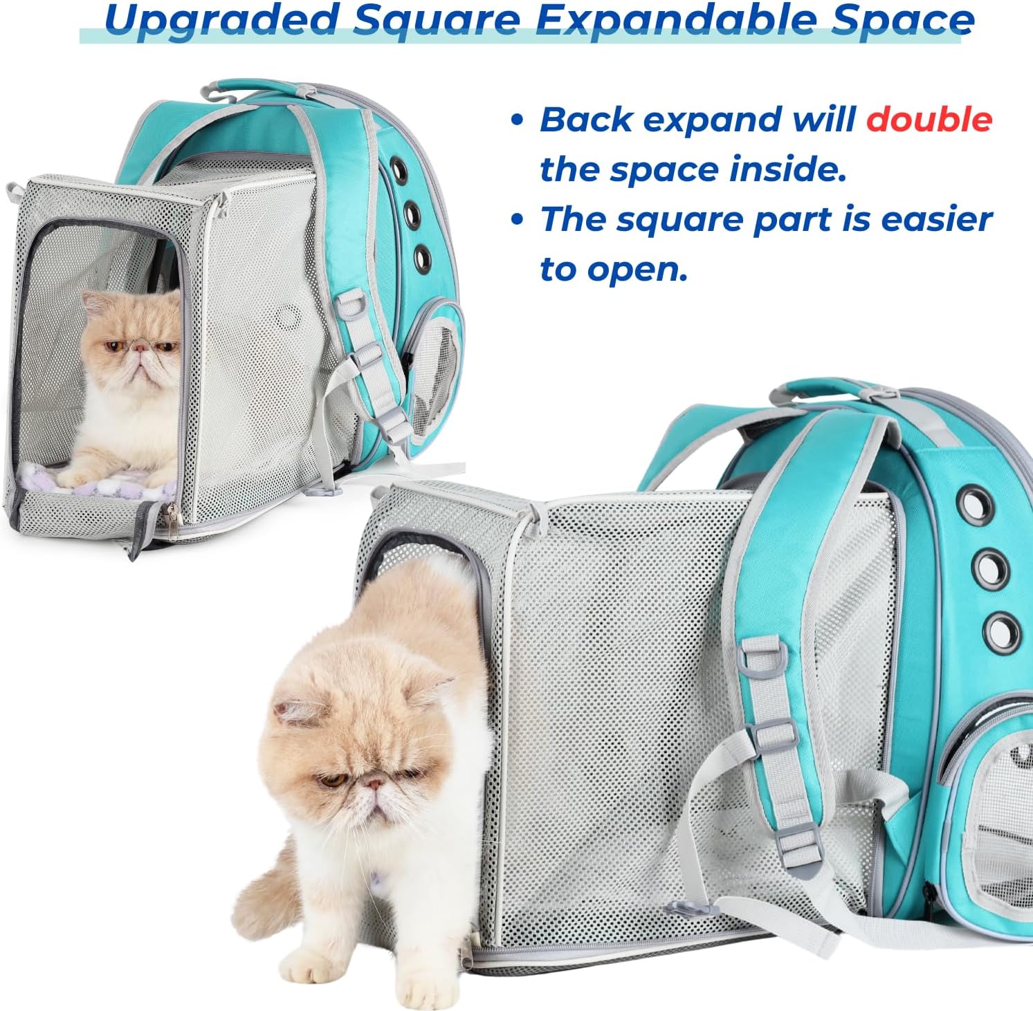Lollimeow Cat Carrier Backpack, Bubble Expandable Backpack Carrier, Pets and Small Dogs,Airline-Approved, Designed for Travel, Hiking, Walking & Outdoor Use (Square Back Expandable-Green)