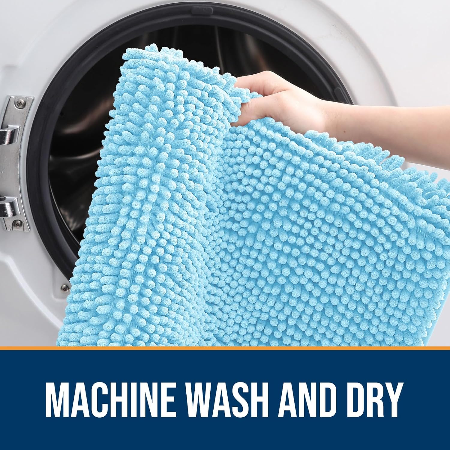OLANLY Dog Door Mat for Muddy Paws 40x32, Absorbs Moisture and Dirt, Absorbent Non-Slip Washable Doormat, Quick Dry Chenille Mud Mat for Dogs, Entry Indoor Entryway Carpet for Inside Floor, Blue