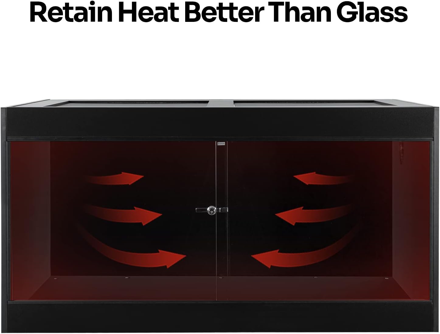 - ăRetain Heat Better Than GlassăUnlike glass or screen enclosures, the thickened wooden reptile enclosure provides excellent heat insulation, more in line with natural reptiles environment. Black and non-reflective surfaces reduce stress in your pets.