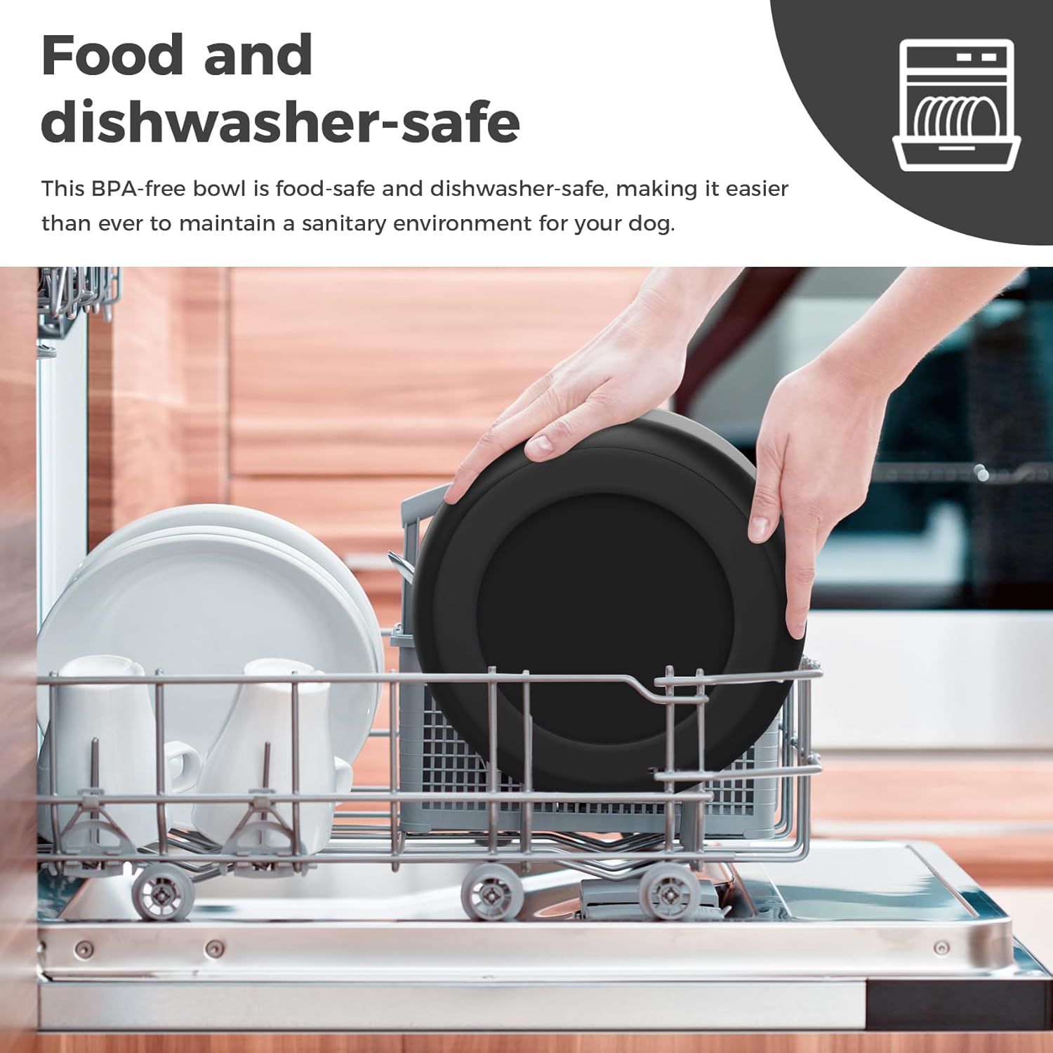 Dog Bowl, Stainless Steel Dog Food and Water Bowl with Non Slip Quiet Bottom, Easy to Clean, Dishwasher Safe, 40oz, Black