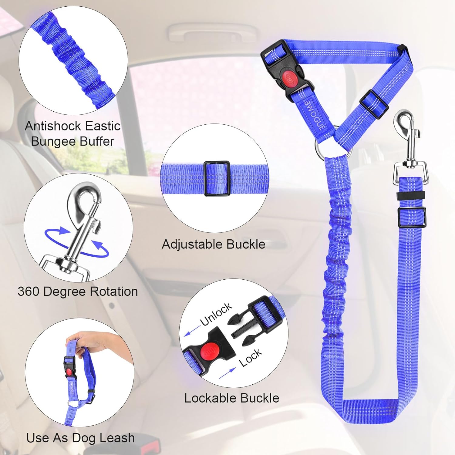 - HIGH QUALITY: Made of high quality nylon fabric to ensure safety, features the solid zinc alloy swivel snap,elastic bungee and quality buckles, The reflective stitching design makes it great for night time use. The elastic bungee helps dog prevent jerking with sudden movement. the pet car seat belt ensures the most safest traveling for your pet, and provides a most relaxing driving experience for you.