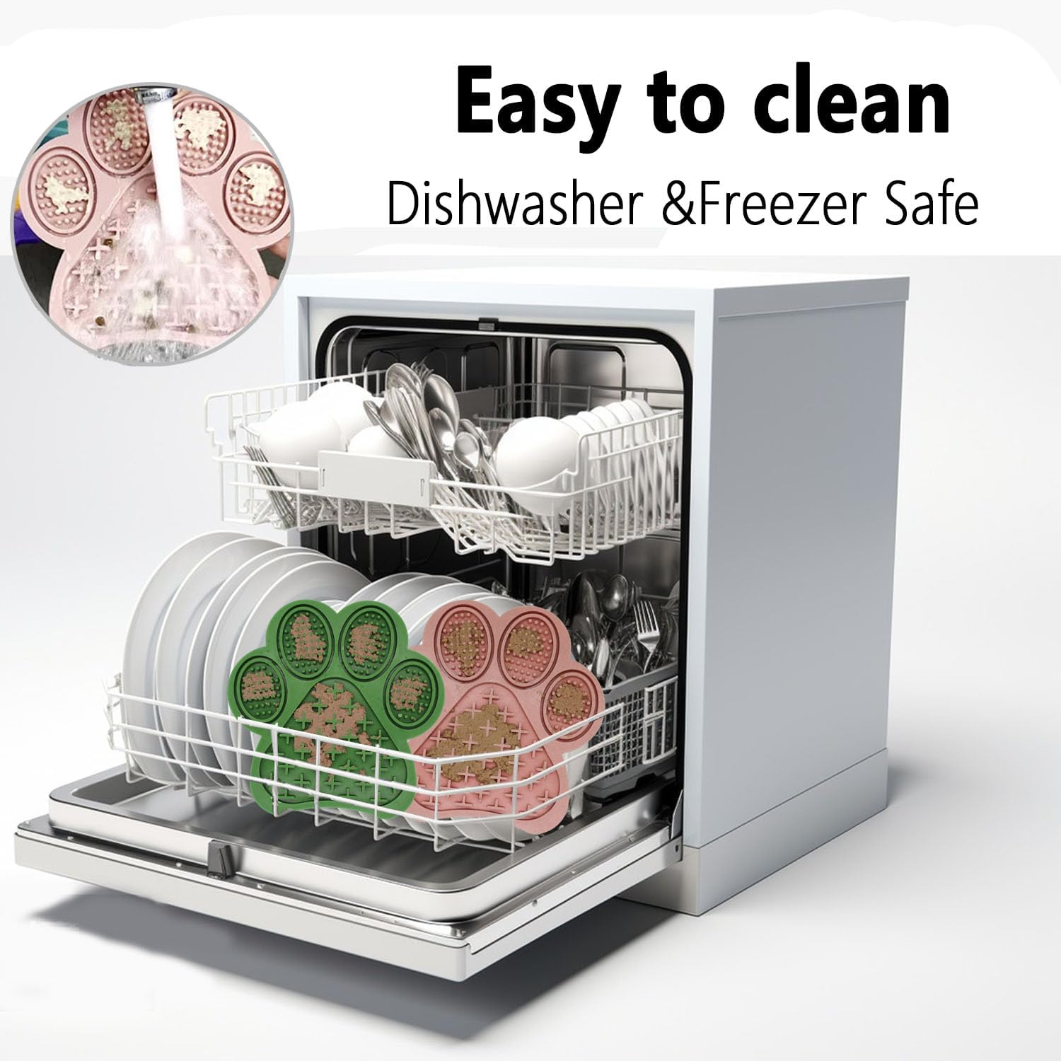 - Food Grade, Freezer and Dishwasher Safe : Our dog peanut butter lick pad is made of 100% BPA free, food grade silicone. This silicone lick pad is safe for your beloved friend's health. It is also freezer safe, easy to clean, and dishwasher safe.