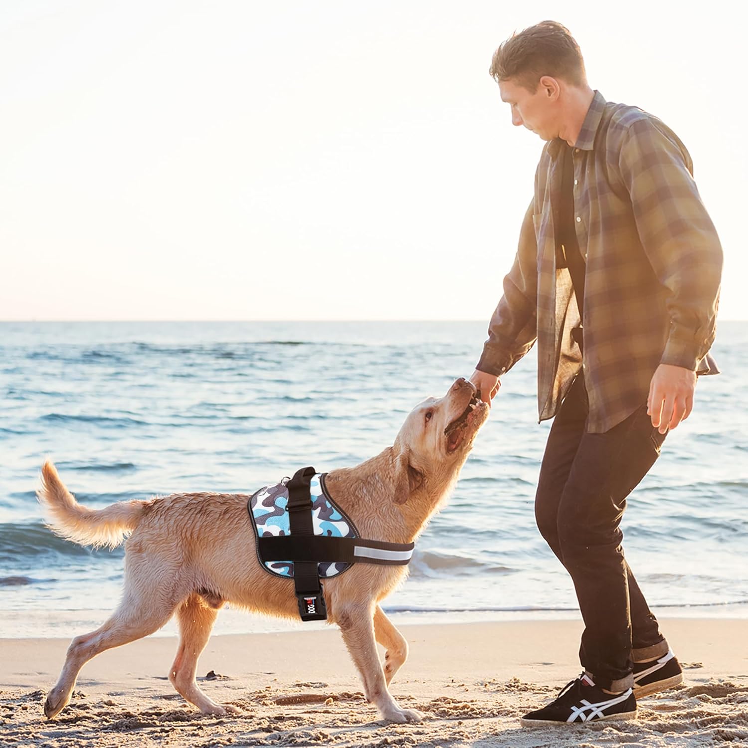 Dogline Dog Harness, Reflective No-Pull Adjustable Vest with Handle for Walking, Training, Breathable, No - Choke Harness for Small, Medium or Large Dogs Room for Patches Girth 22"-28" in Blue Camo