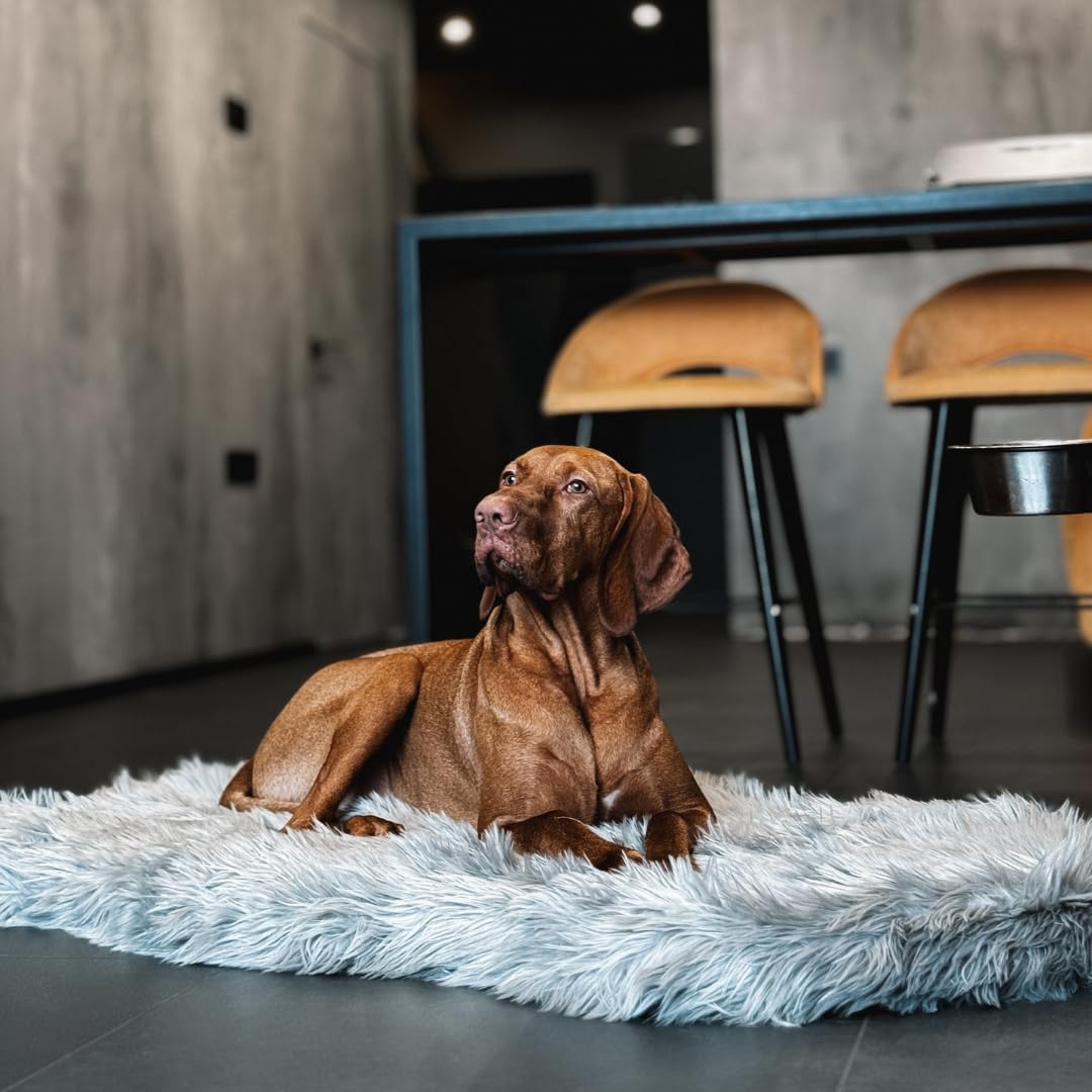 - GET THE RIGHT FIT: Whether you have a small pup or a large dog, our rug memory fur dog bed has you covered. Itâs available in 3 sizes (Medium: 40â L x 25â W, Large/Extra Large: 50â L x 30â W, Giant: 60â L x 35â W) to ensure your pet gets the perfect fit