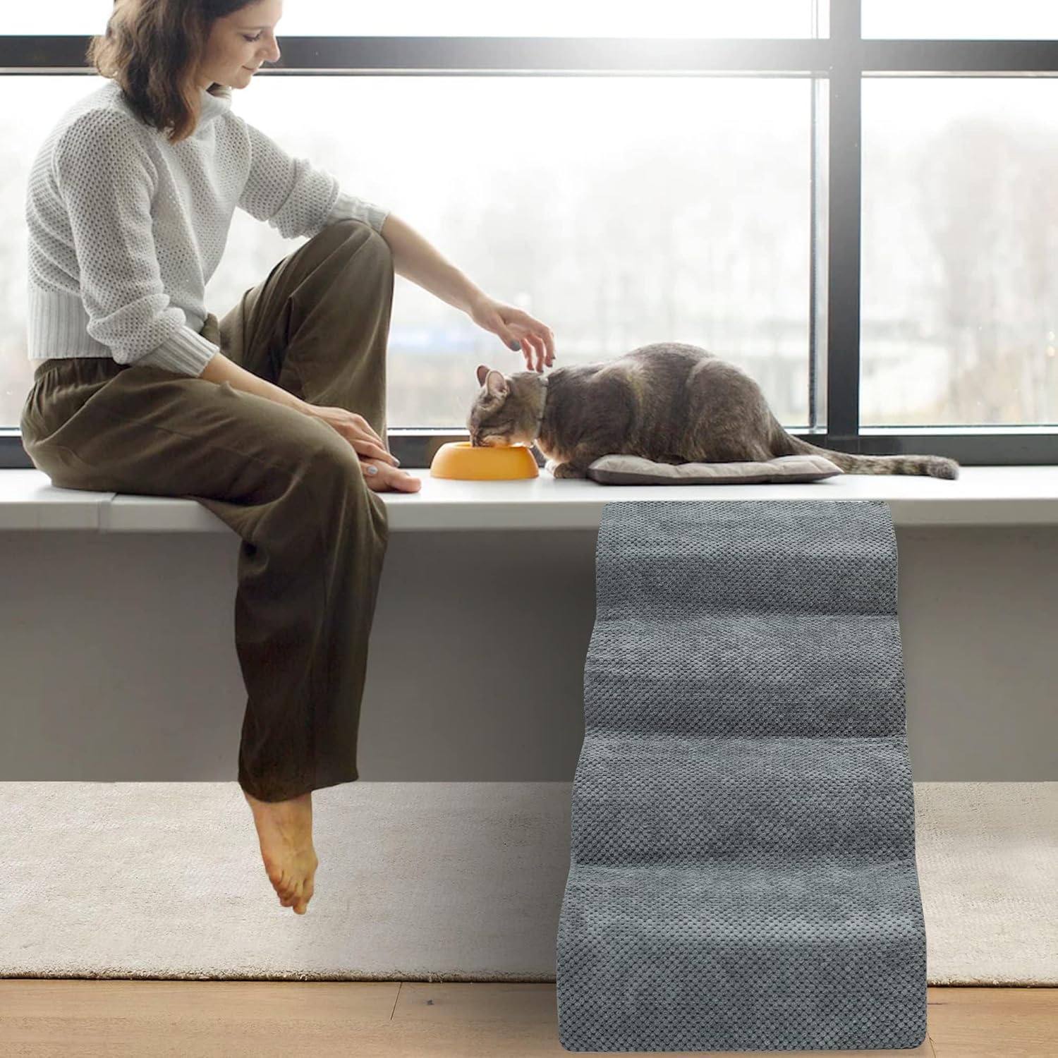 - Easy to Install and Clean: This pet step is 29 inches long, 16 inches wide and 20 inches high. It can be assembled and disassembled through simple steps. It is easy to clean. You can wash the removed cover by machine to keep the pet step clean and tidy