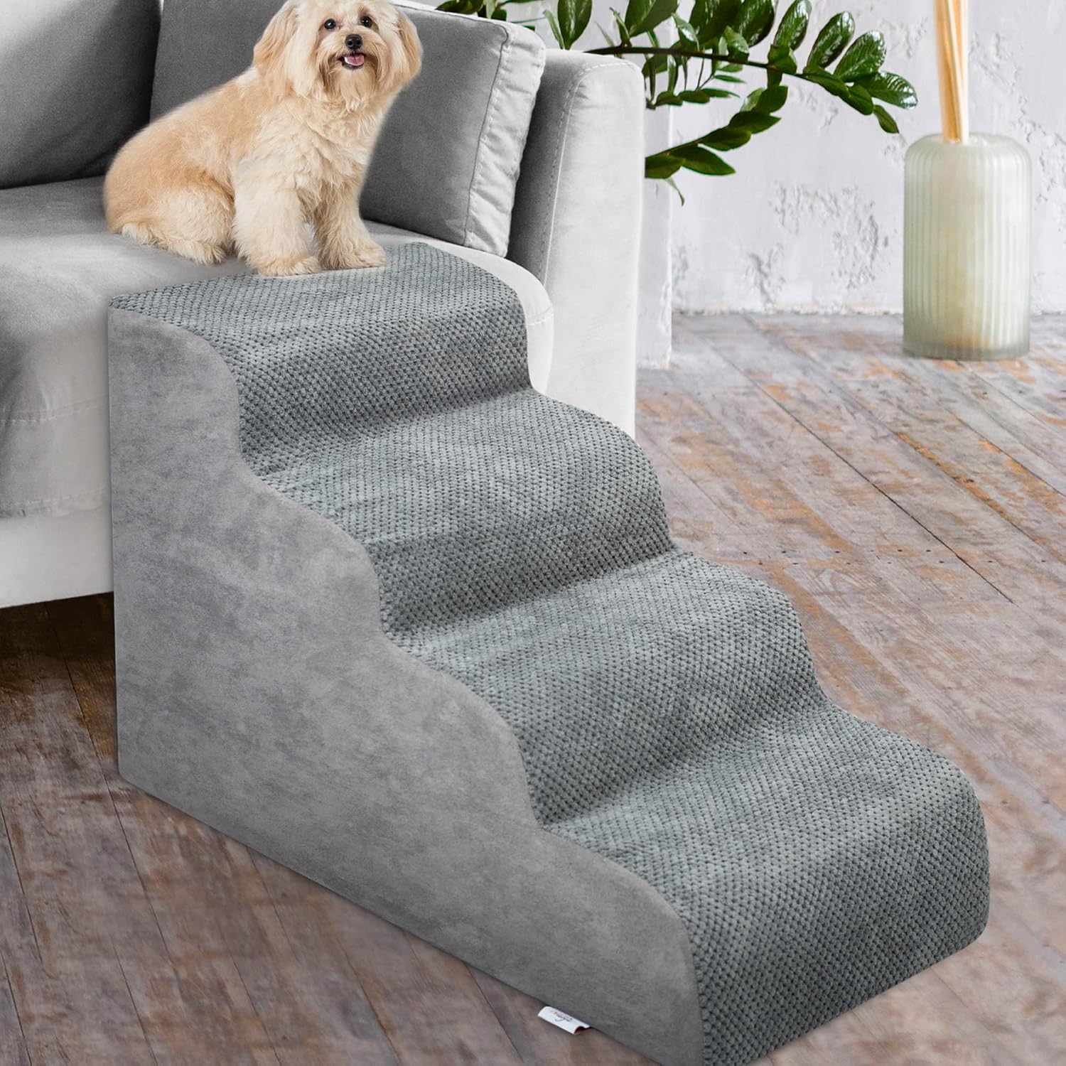 Dog Stairs for Small Dogs - High Density Foam Dog Ramp, Extra Wide Pet Steps with Non-Slip Bottom for High Beds, Couche and Sofa, Best for Dogs Injured, Older Dogs Cats, Pet with Joint Pain