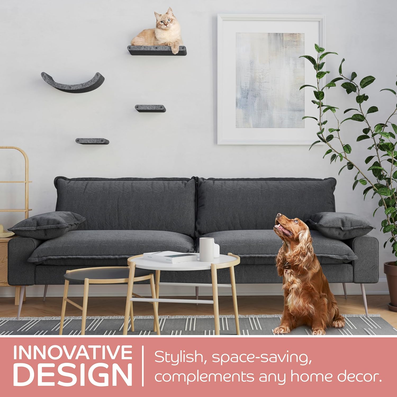 - INNOVATIVE AND SUSTAINABLE | Soft to the touch, firm in structure, and very tactile â cats love it! Our patent-pending cat shelf material is acoustic felt which is made from 100% Recycled PET bottles! It's built to withstand extended wear and tear.