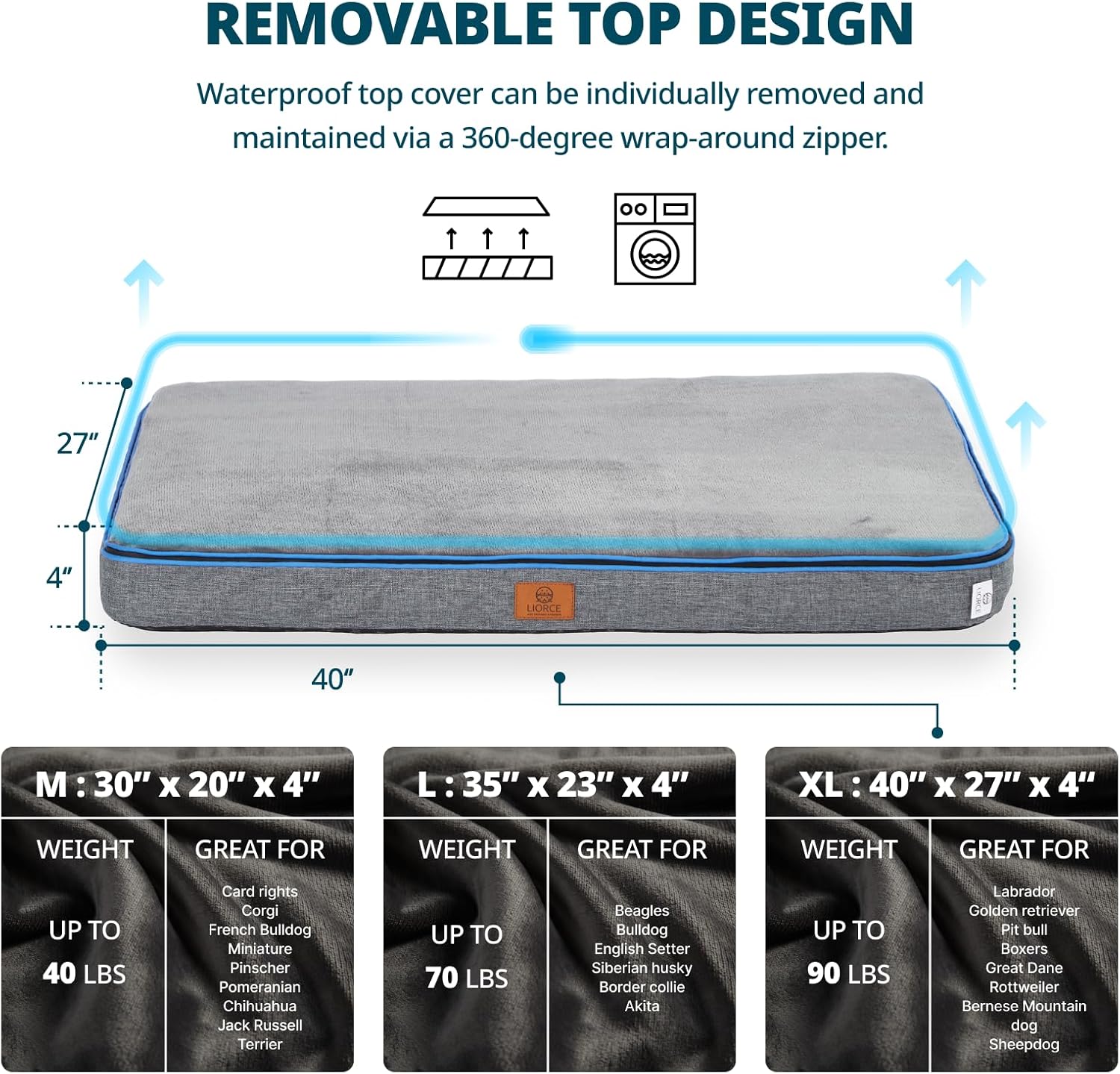 - Double 100% Waterproof: The removable washable cover and foam are protected with a 100% waterproof liner. Educes Liquid Penetration and Enhances dog bed durable.