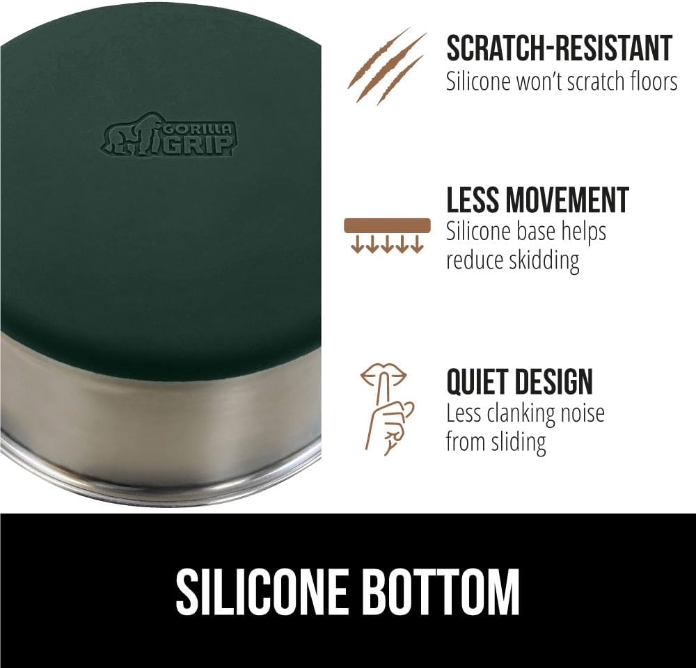 GORILLA GRIP Set of 2 Dog Bowls, Holds 4 Cups (32 fl oz), Heavy Duty Metal Food and Water Bowl for Feeding Dogs and Cats, Dishwasher Safe, Rust Resistant Stainless Steel, BPA Free Rubber Base, Green