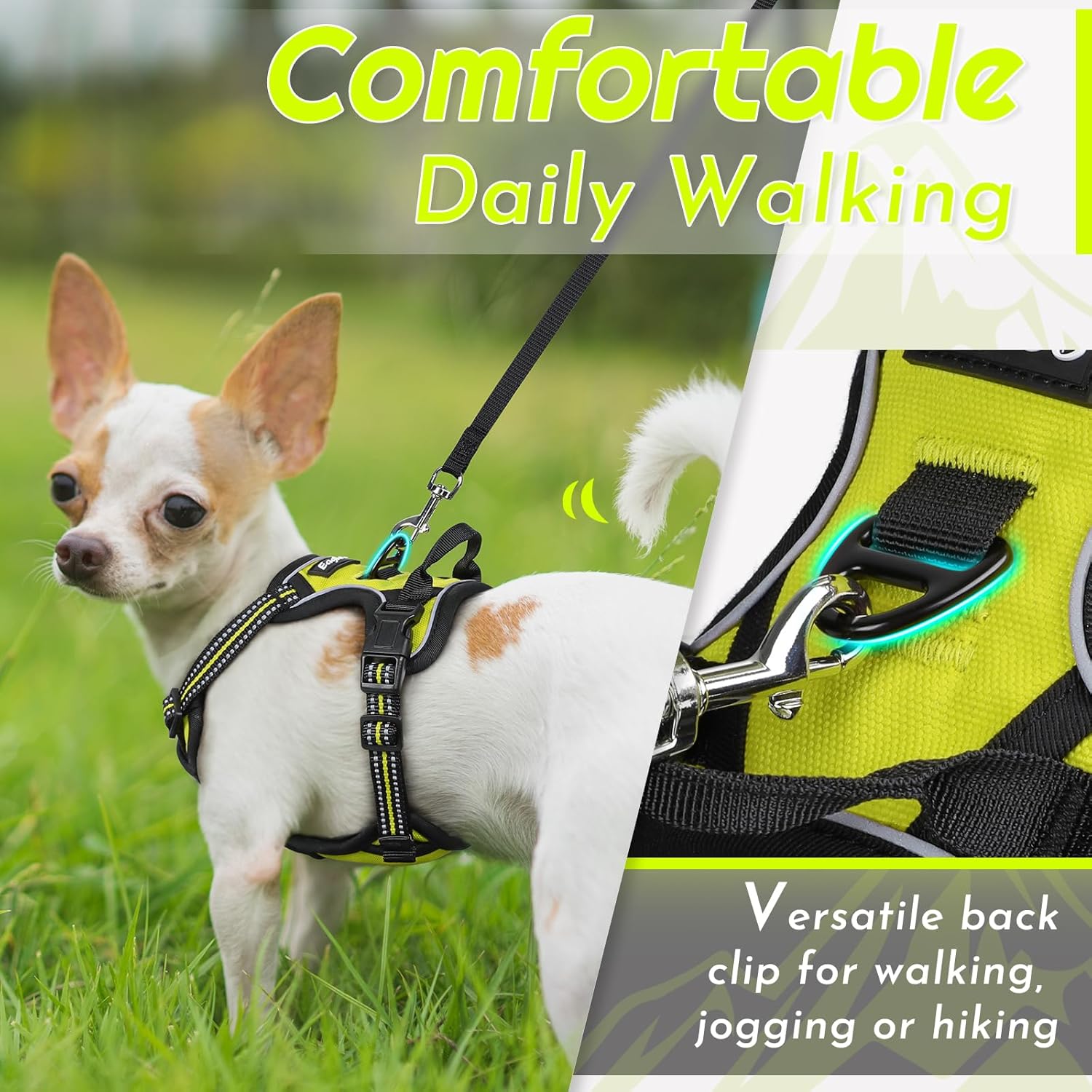 - No Pull & Better Control: Our harness features dual sturdy metal leash ringsâthe front chest ring minimizes pulling for effective training, while the back ring is ideal for casual walks, jogging, or hikingâensuring superior handling in any situation