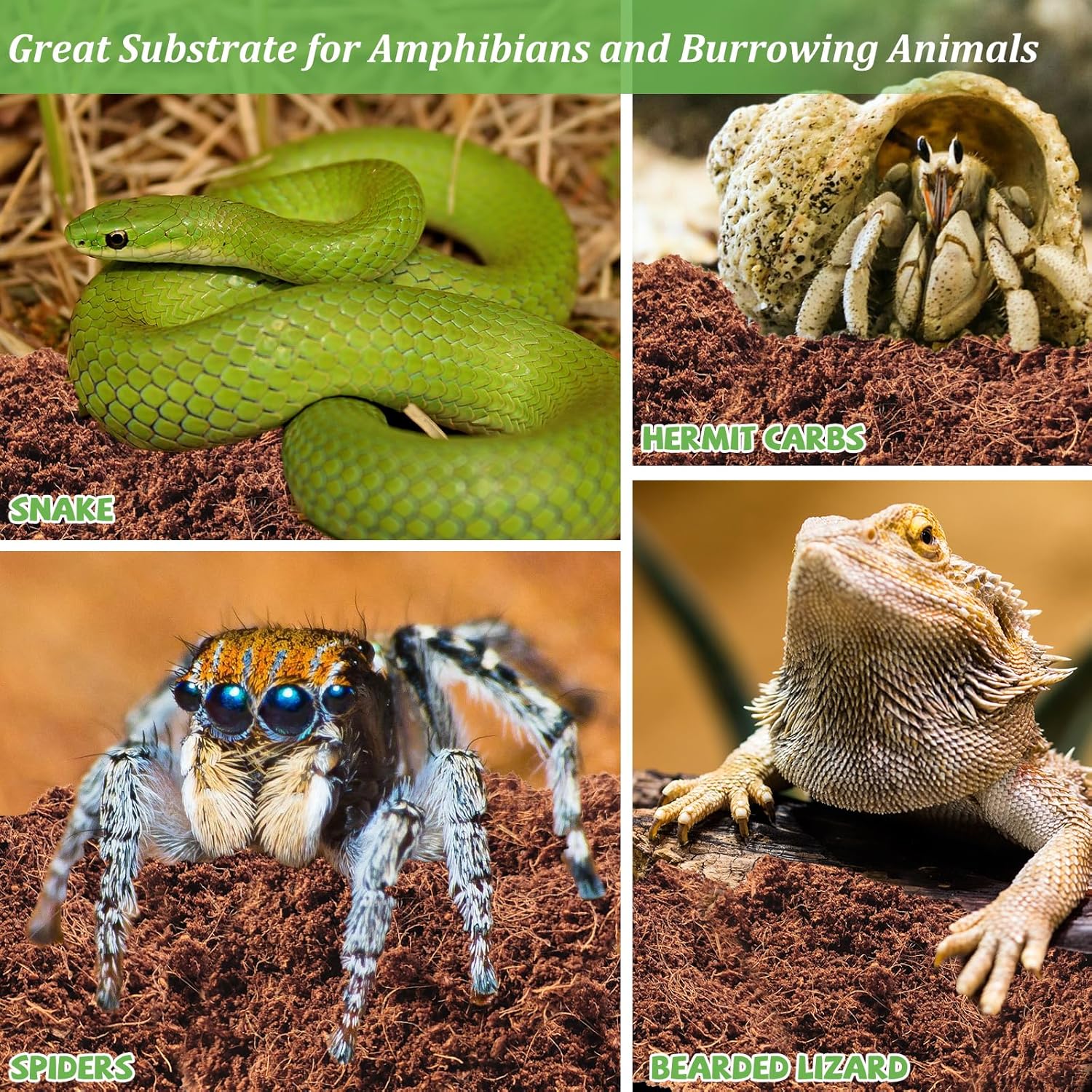 - Universal Aquarium Substrate: Coconut substrate terrarium bedding is very soft and comfortable with good breathability, even your pet can breathe freely in the coconut soil. Suitable for frogs, hermit crabs, snakes, turtles, frogs, lizards, chameleons, geckos, salamander,snails and orb pythons, and spiders and other burrowing animals, you can use it to keep your pets with confidence