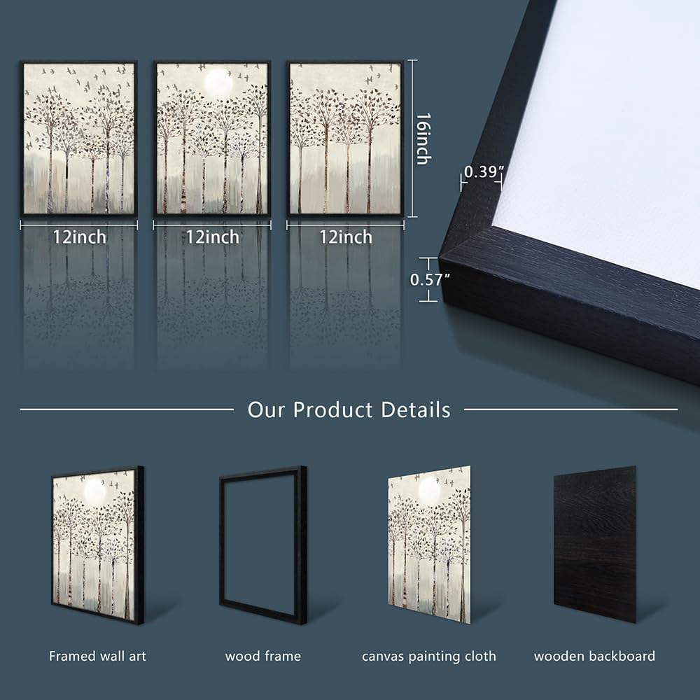 - 【FRAMED CANVAS WALL ART SIZE】Size Is :12x16inch (30x40cm)(Including The Outer Frame), total 3 Panels. Black Framed Wall Decor Art Wood Frame wall art.